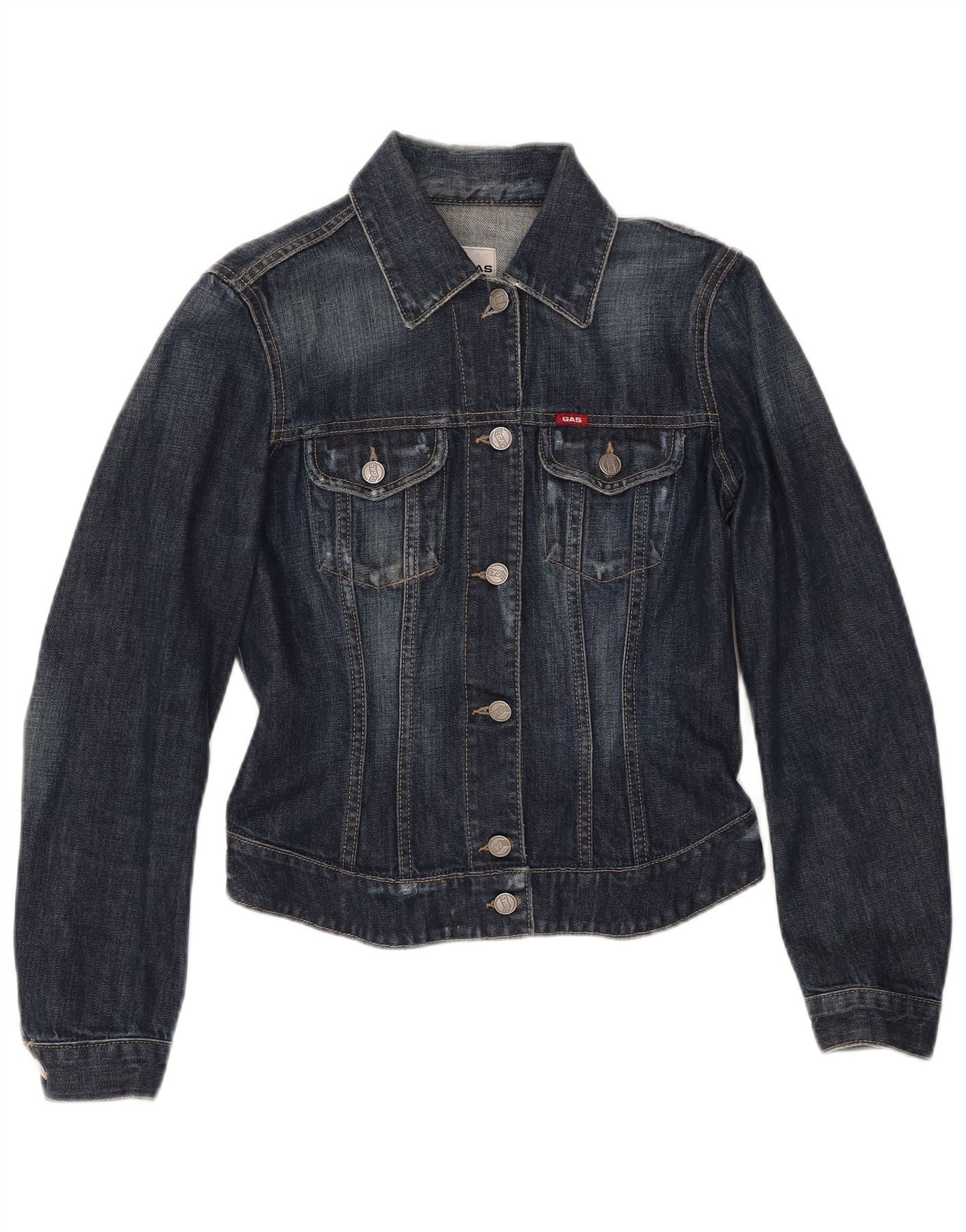GAS Dame Crop Denim Jacket UK 10 Small Blue Cotton