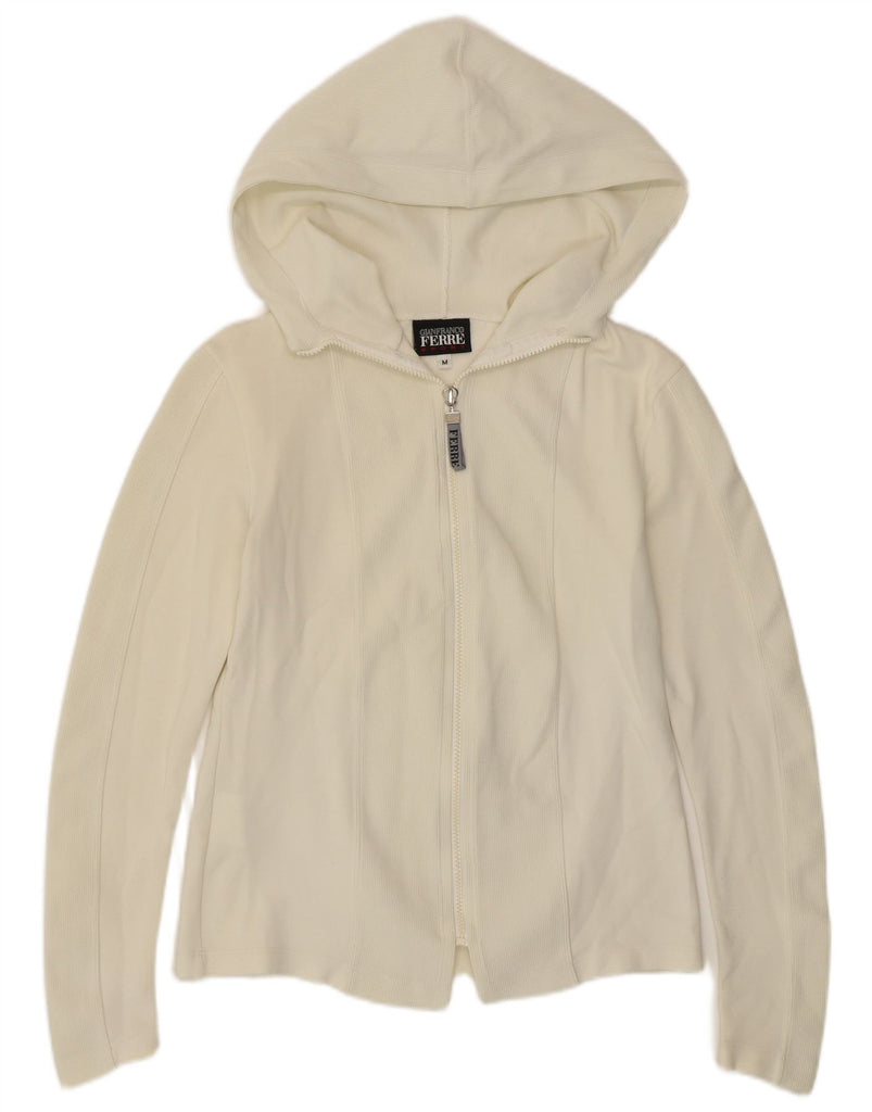 GIANFRANCO FERRE Womens Hooded Cardigan Sweater UK 12 Medium Off White
