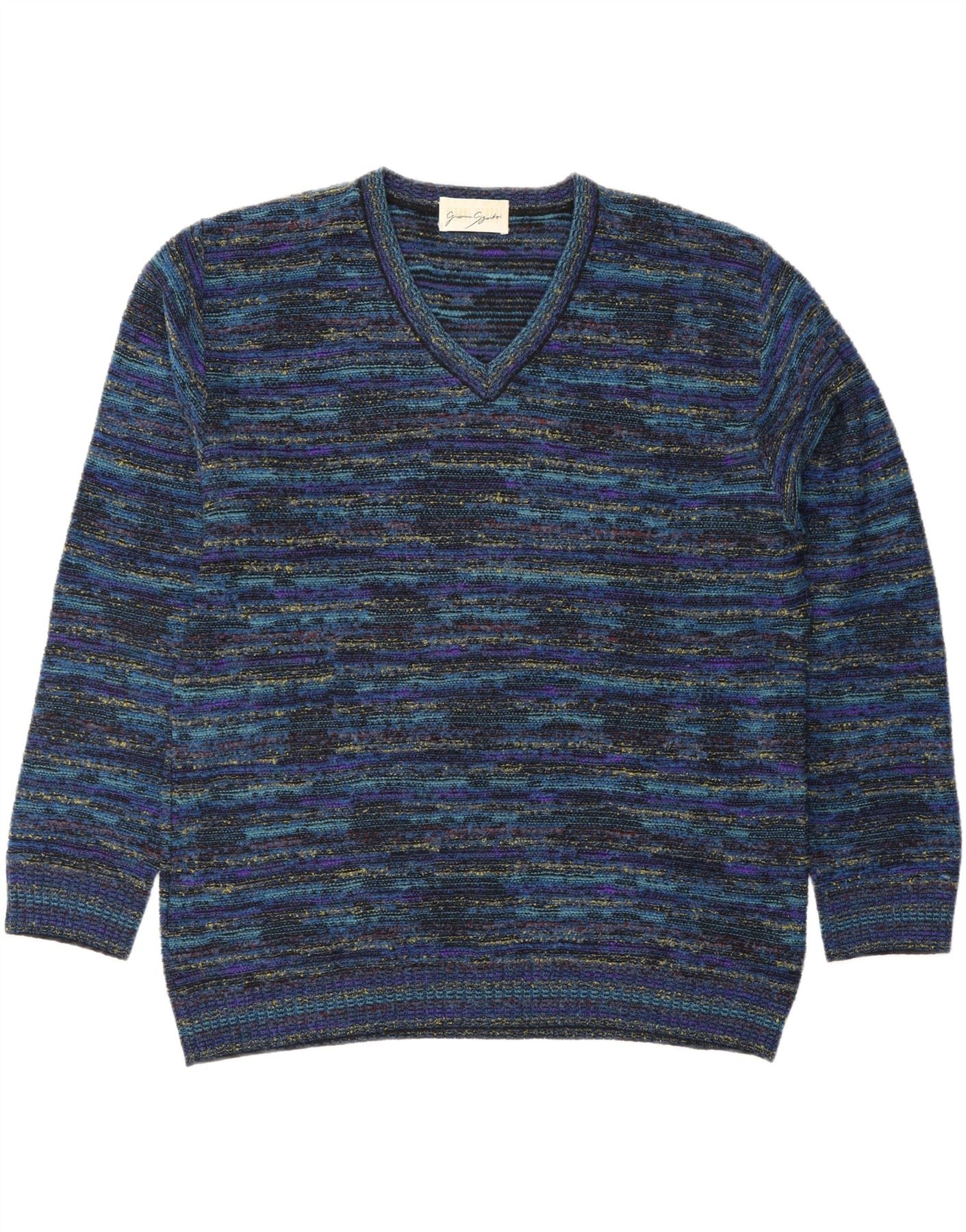 GIANNI SGARBI Herre V-hals sweater IT 52 Stor Blå Flecked Uld