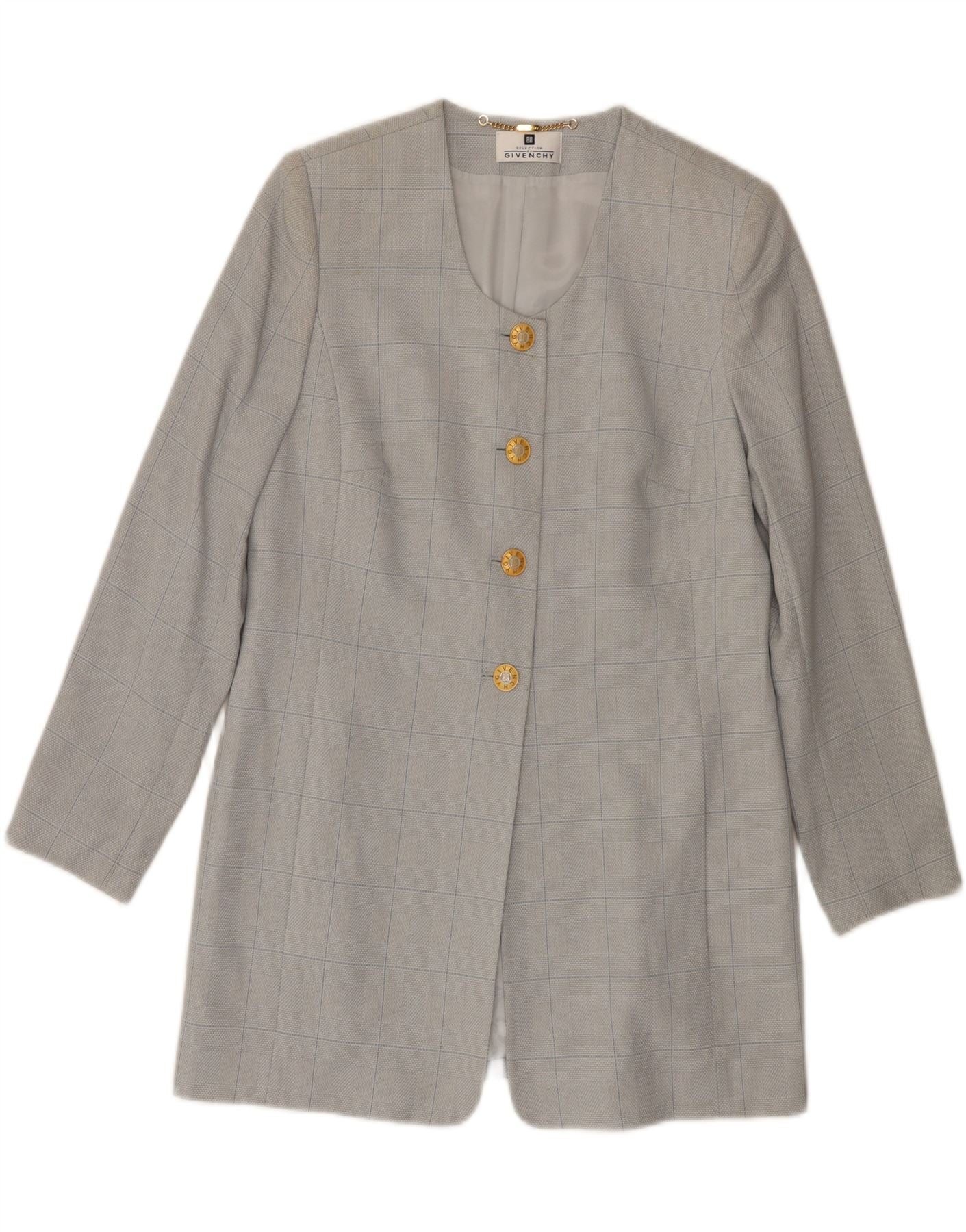 GIVENCHY Womens Longline 4 Button Blazer Jacket US 10 Large Grey Check