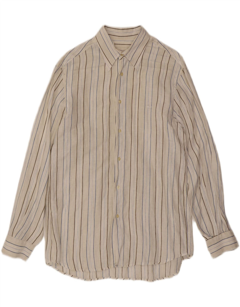 GOOSE & GANDER Herreskjorte IT 50 Medium Off White Stribet hør