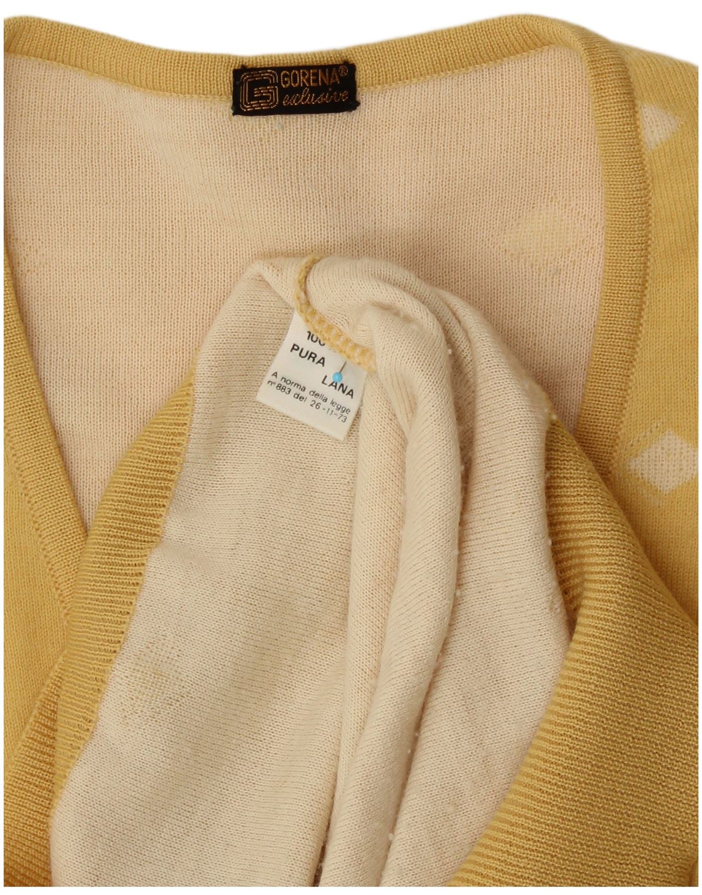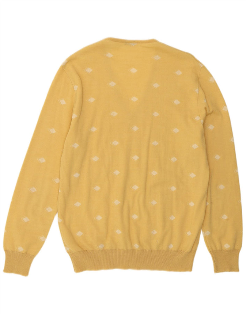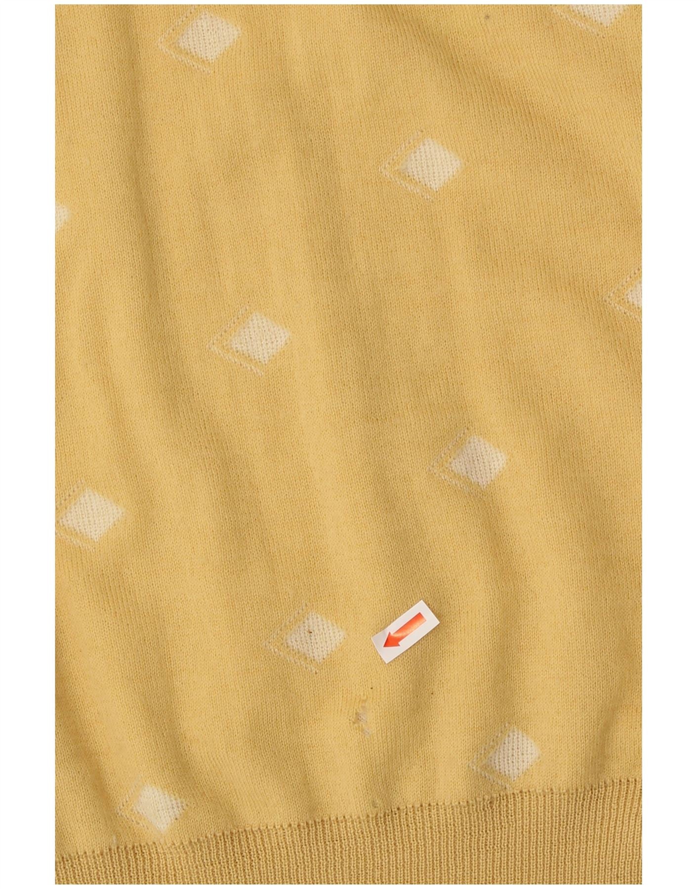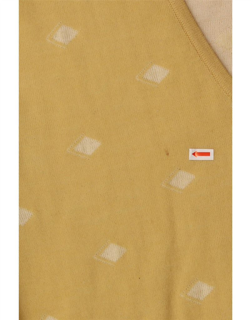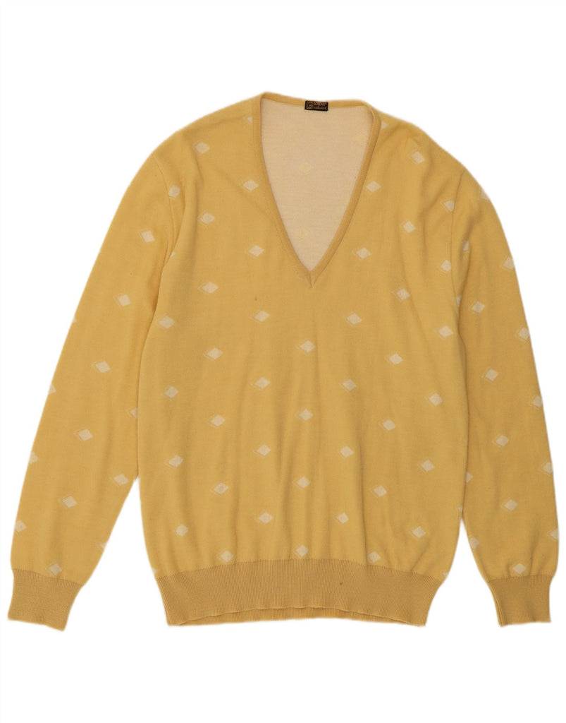 GORENA Womens V-Neck Jumper Sweater UK 14 Large Yellow Spotted Wool