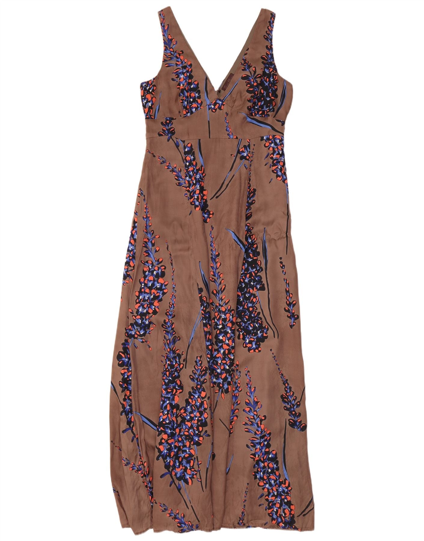 GREAT PLAINS ærmeløs maxikjole til kvinder UK 12 Medium Brown Floral Rayon