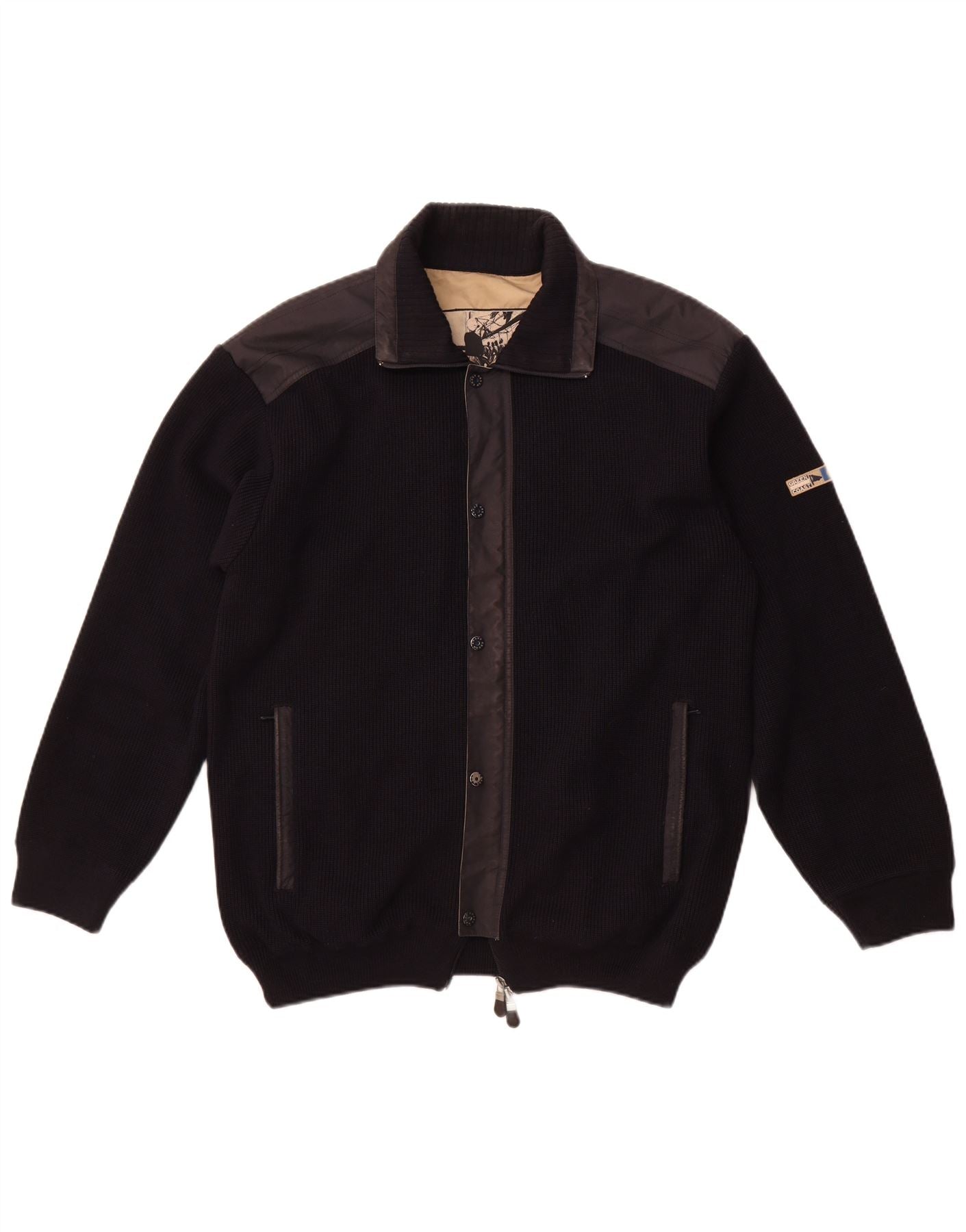 GREEN COAST Herre Cardigan Sweater IT 58 2XL Marineblå Merinould