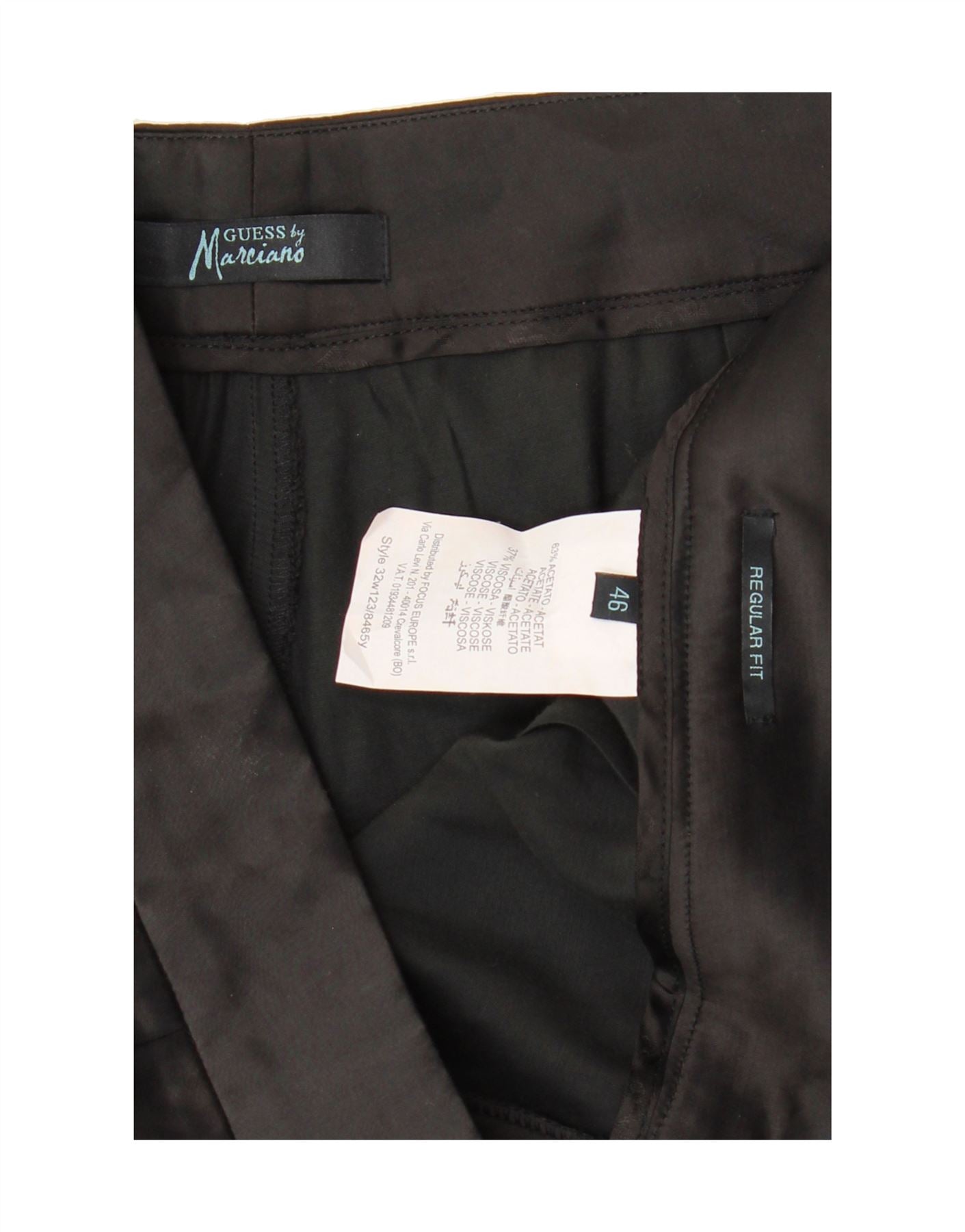 - AI Description: Elevate your wardrobe with these Guess By Marciano trousers. Crafted from a blend of 62% acetate and 38% viscose rayon, these black trousers offer both comfort and style. The regular fit and pull-on closure ensure a flattering silhouette and ease of wear. Perfect for any occasion, these pre-owned trousers are in excellent condition and feature practical pockets. Label size 46.