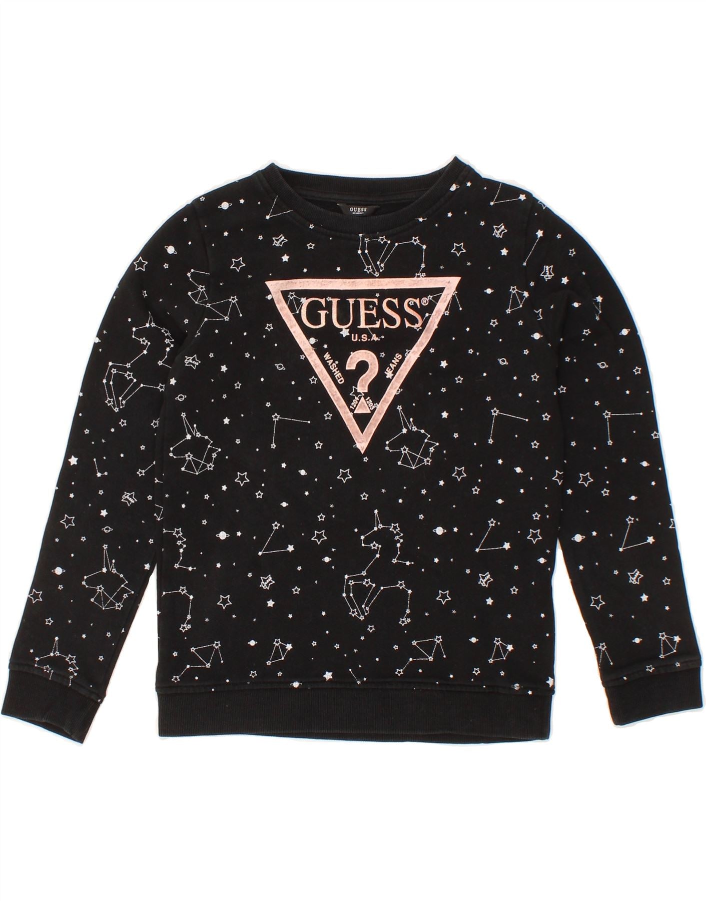 GUESS Girls Abstract Pattern Graphic Sweatshirt Jumper 9-10 Years Black