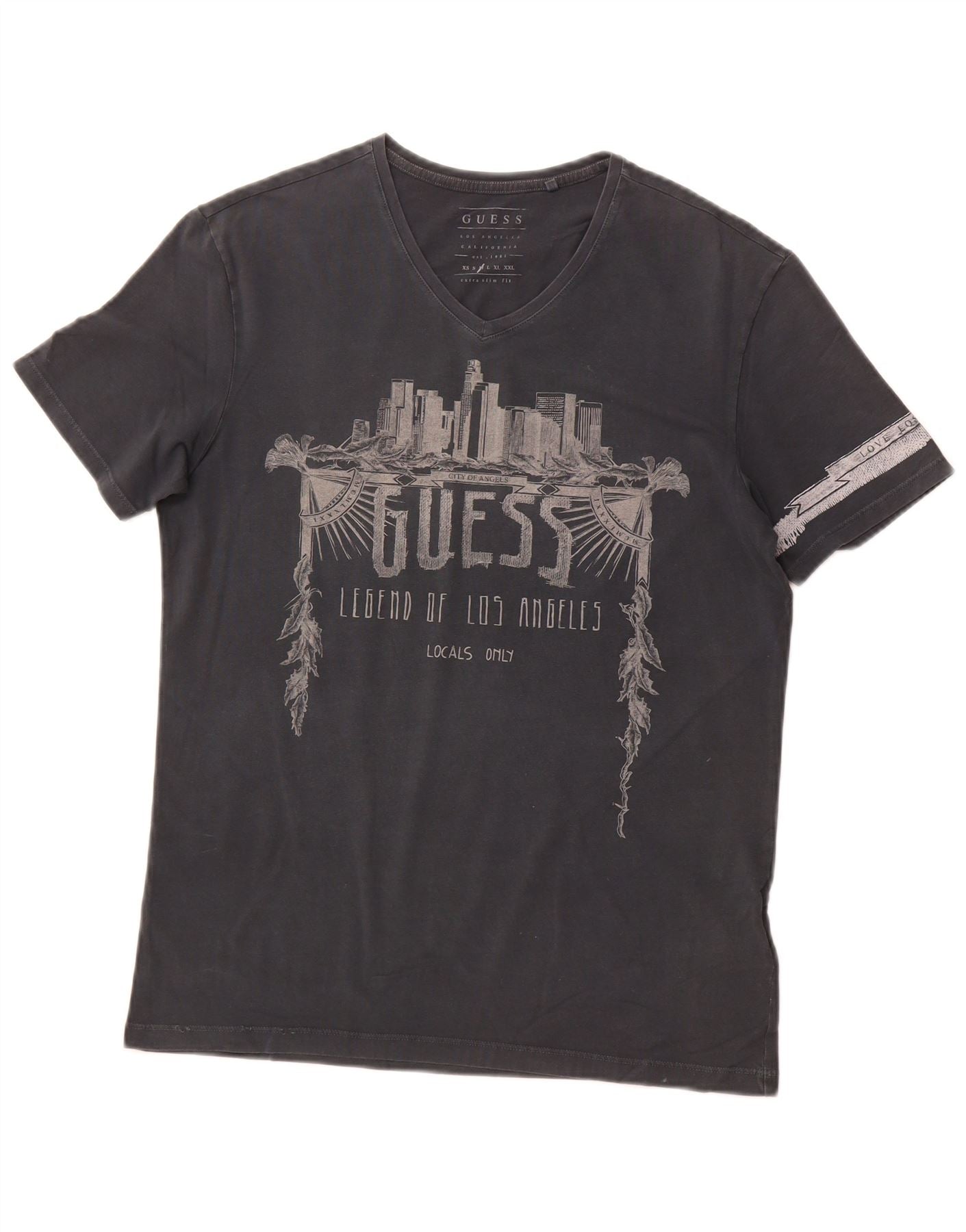 GUESS Herre Los Angeles Extra Slim Grafisk T-Shirt Top Medium Grå Bomuld