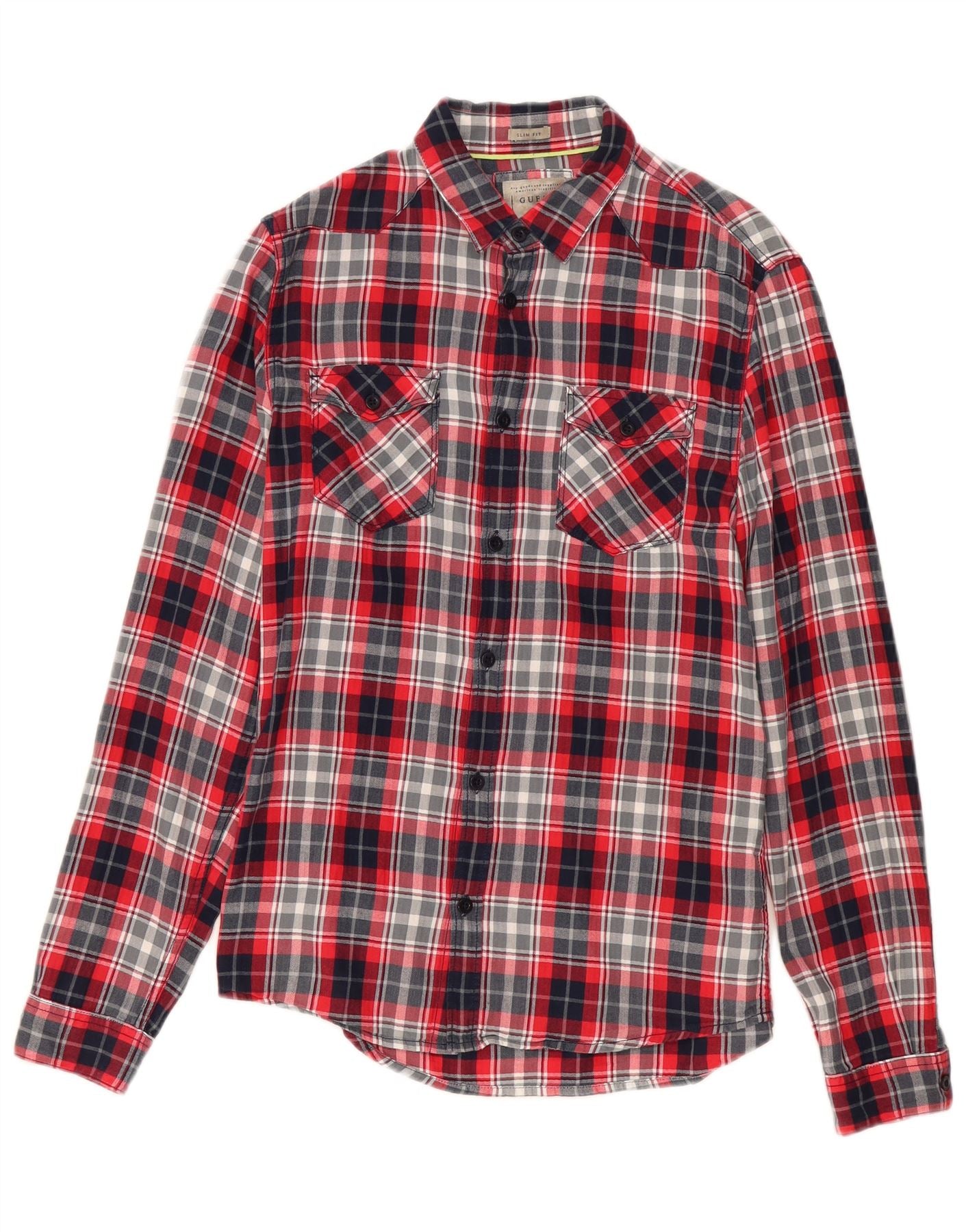 Guess Herre Slim Fit Flanellskjorte Lille Rød Plaid Bomuld