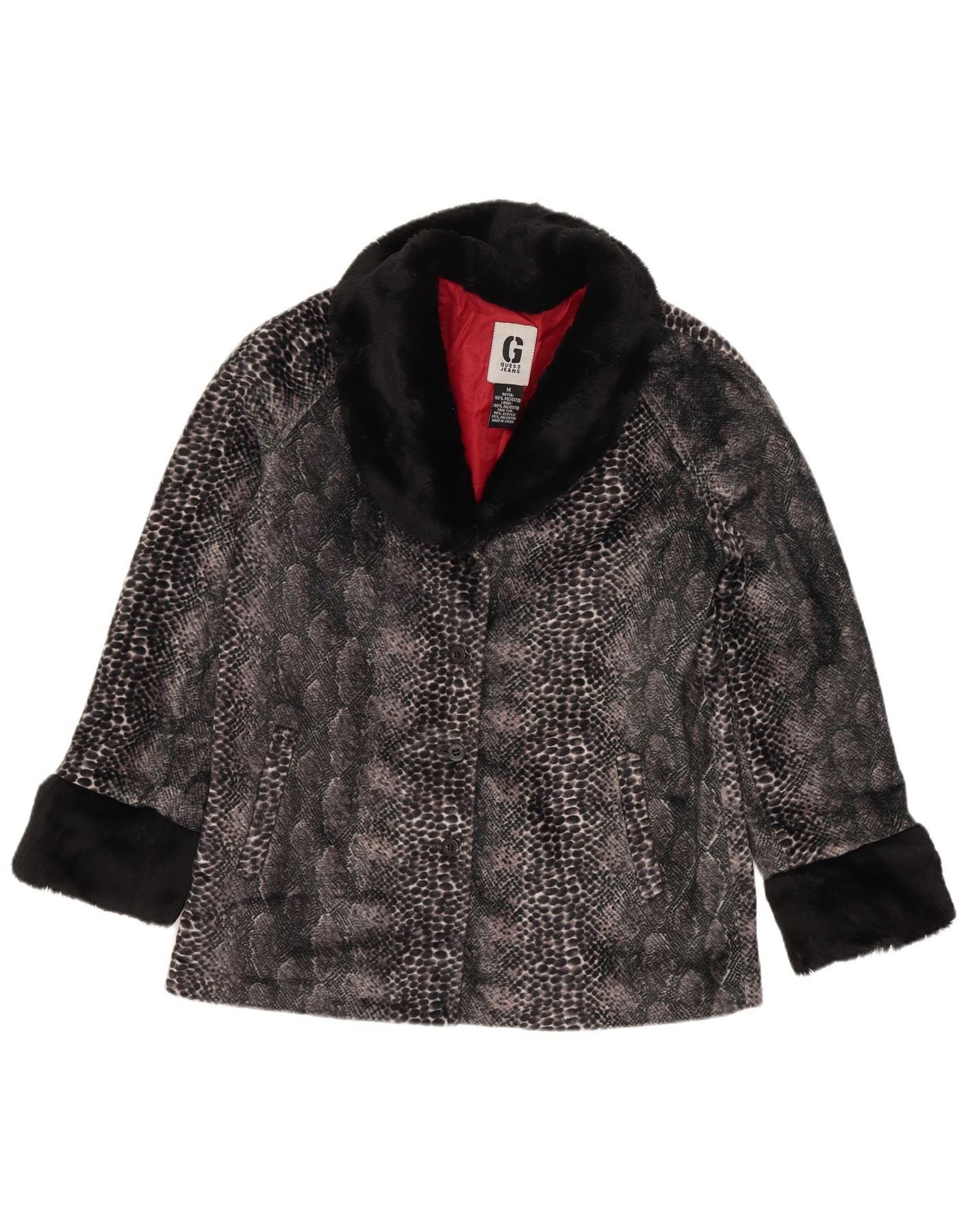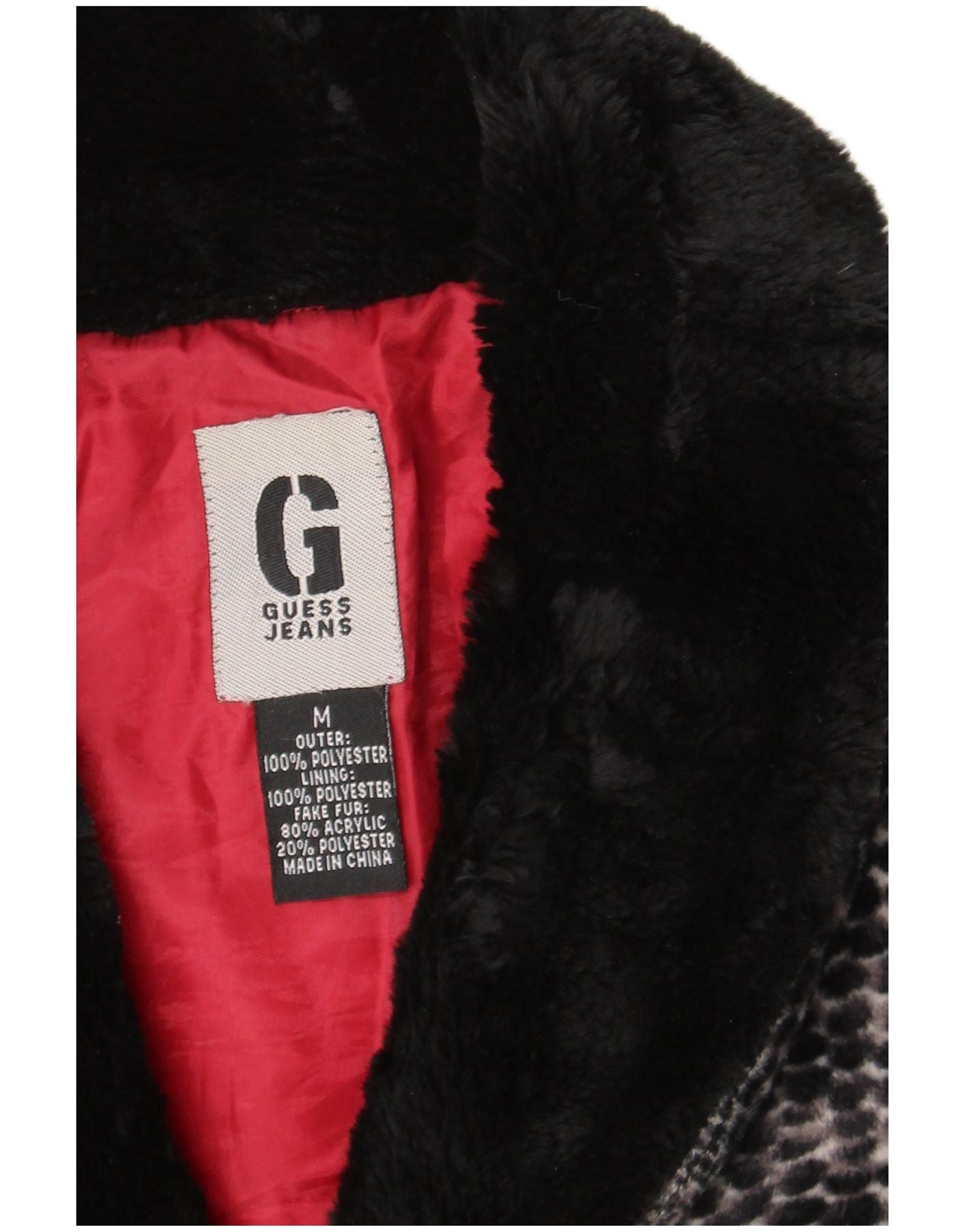 Guess Womens Faux Fur Jacket UK 14 Medium Grey Animal Print Polyester