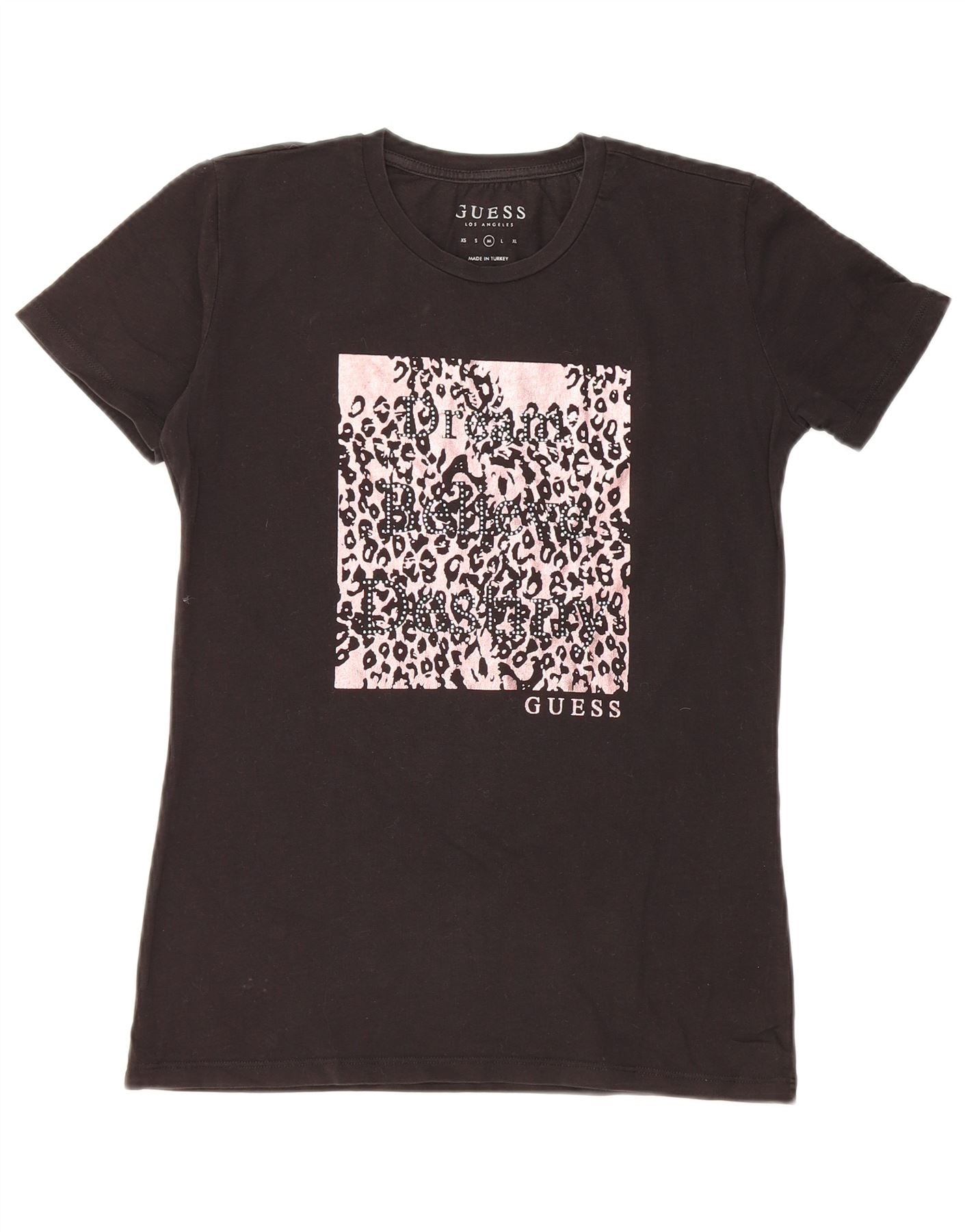 GUESS Grafisk T-shirt top til kvinder UK 12 Medium Sort bomuld