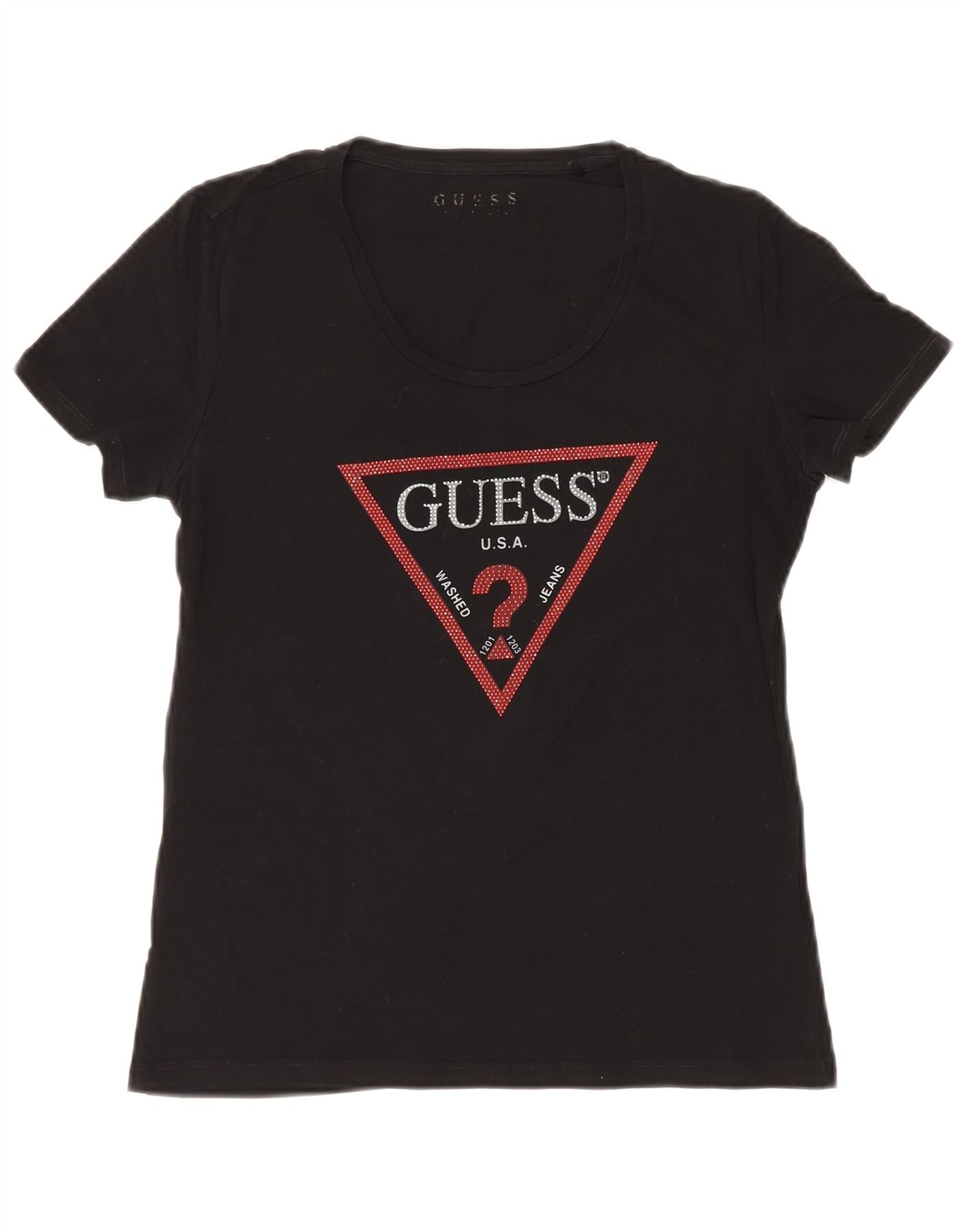 GUESS Grafisk T-shirt top til kvinder UK 8 Lille sort bomuld