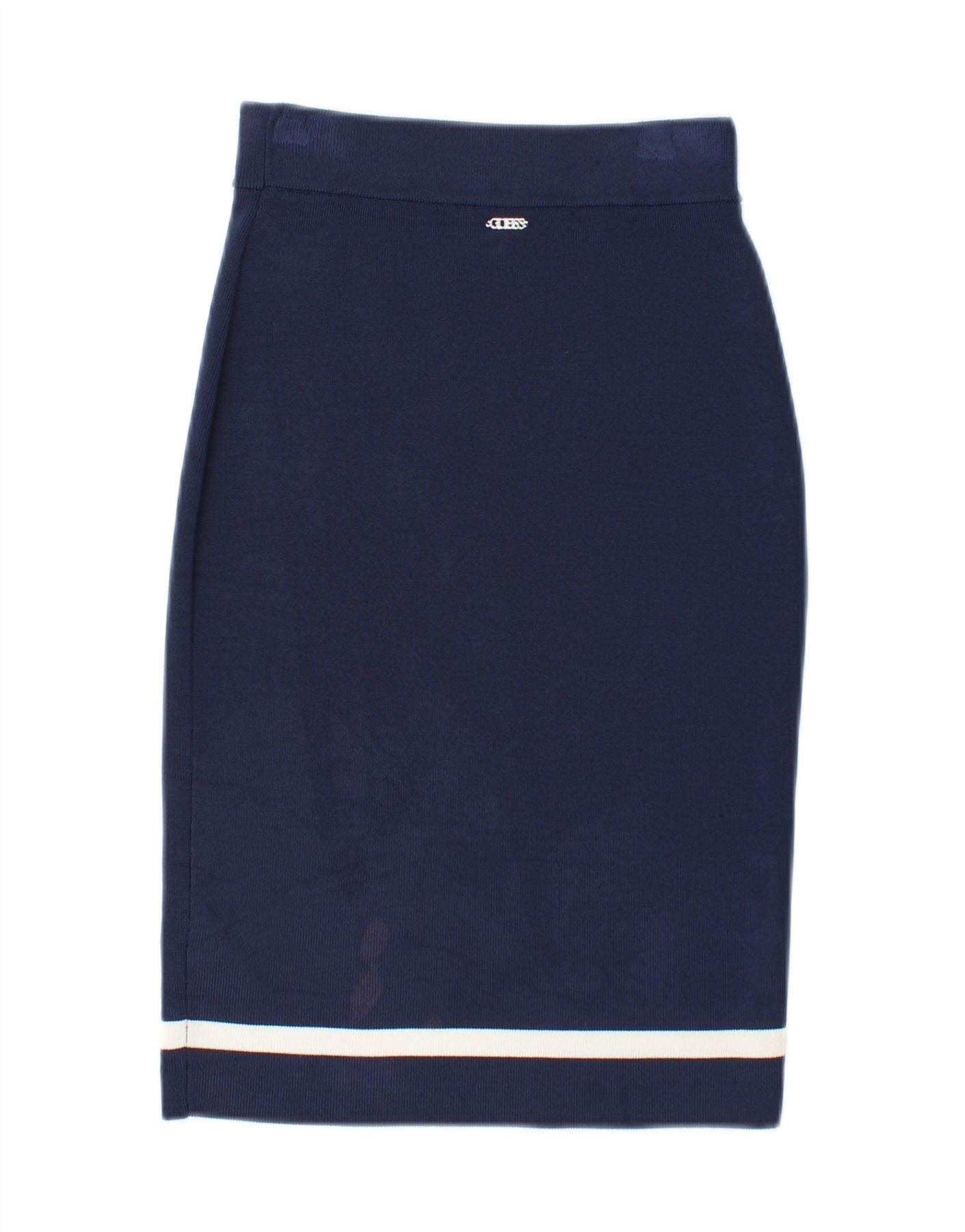 GUESS Womens Knit Pencil Skirt Small W26 Navy Blue Striped Viscose