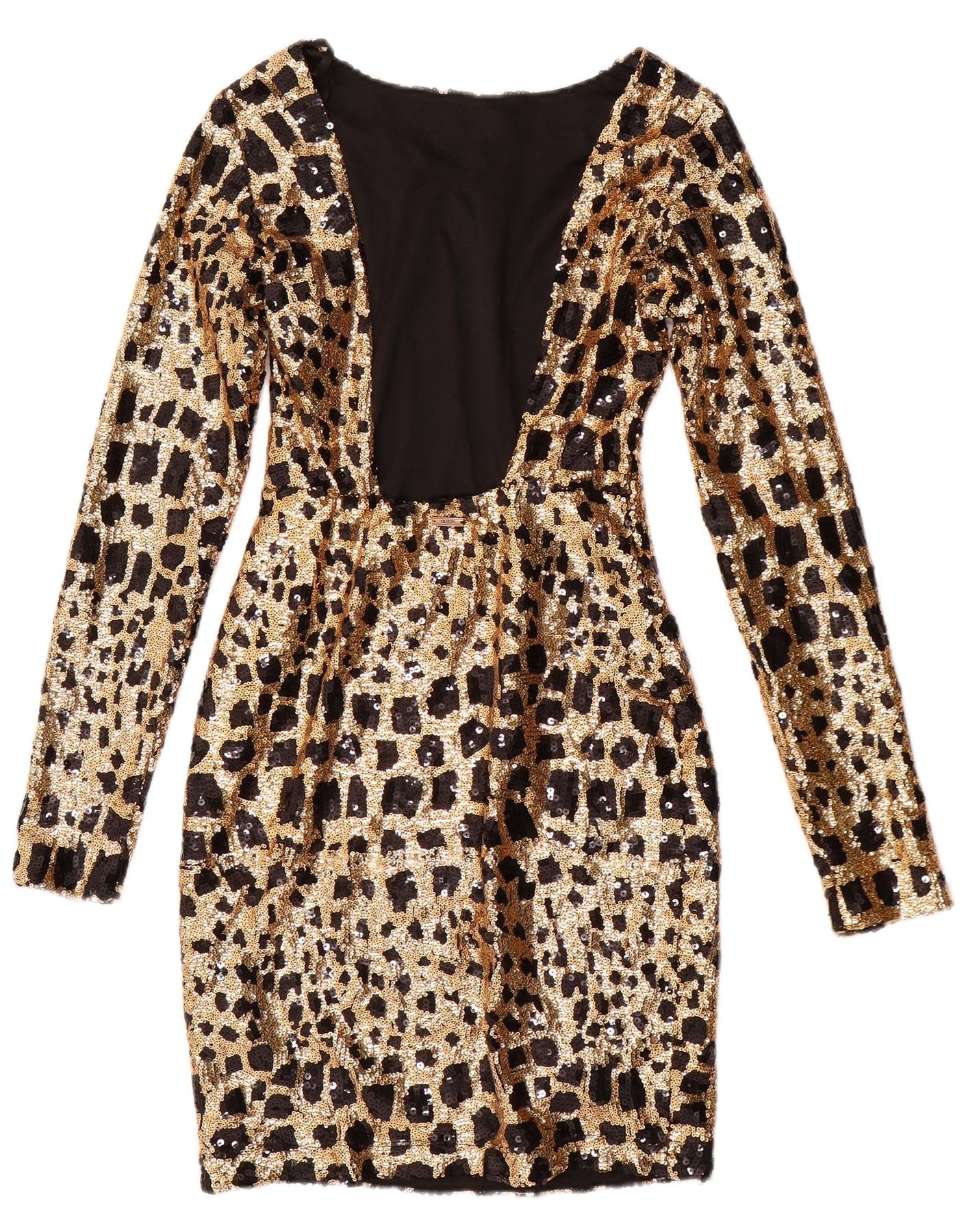 GUESS Dame Langærmet Pailletter Bodycon Kjole UK 6 XS Guld Geometrisk