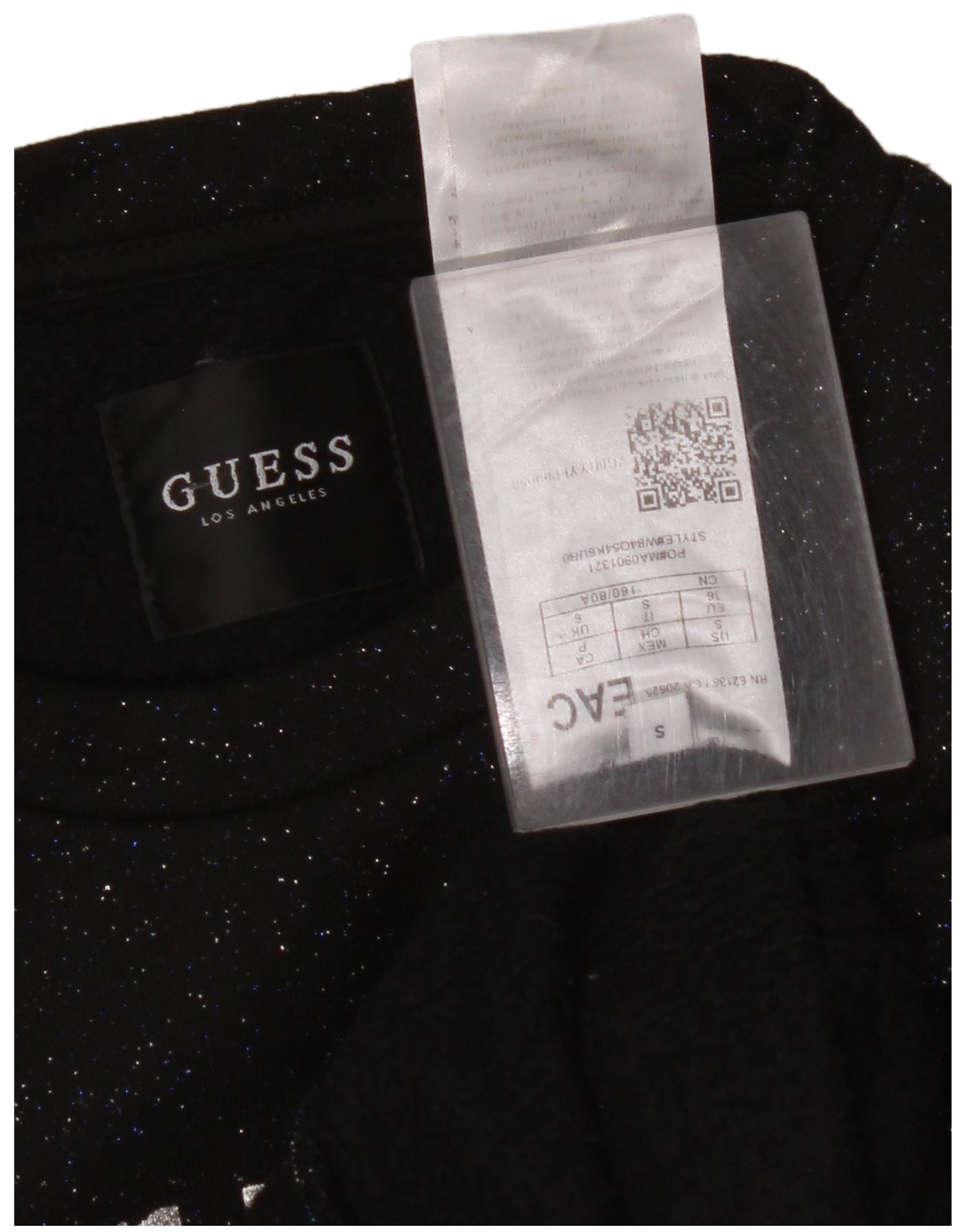 GUESS Womens Oversized Crop Sweatshirt Jumper UK 10 Small Black Flecked