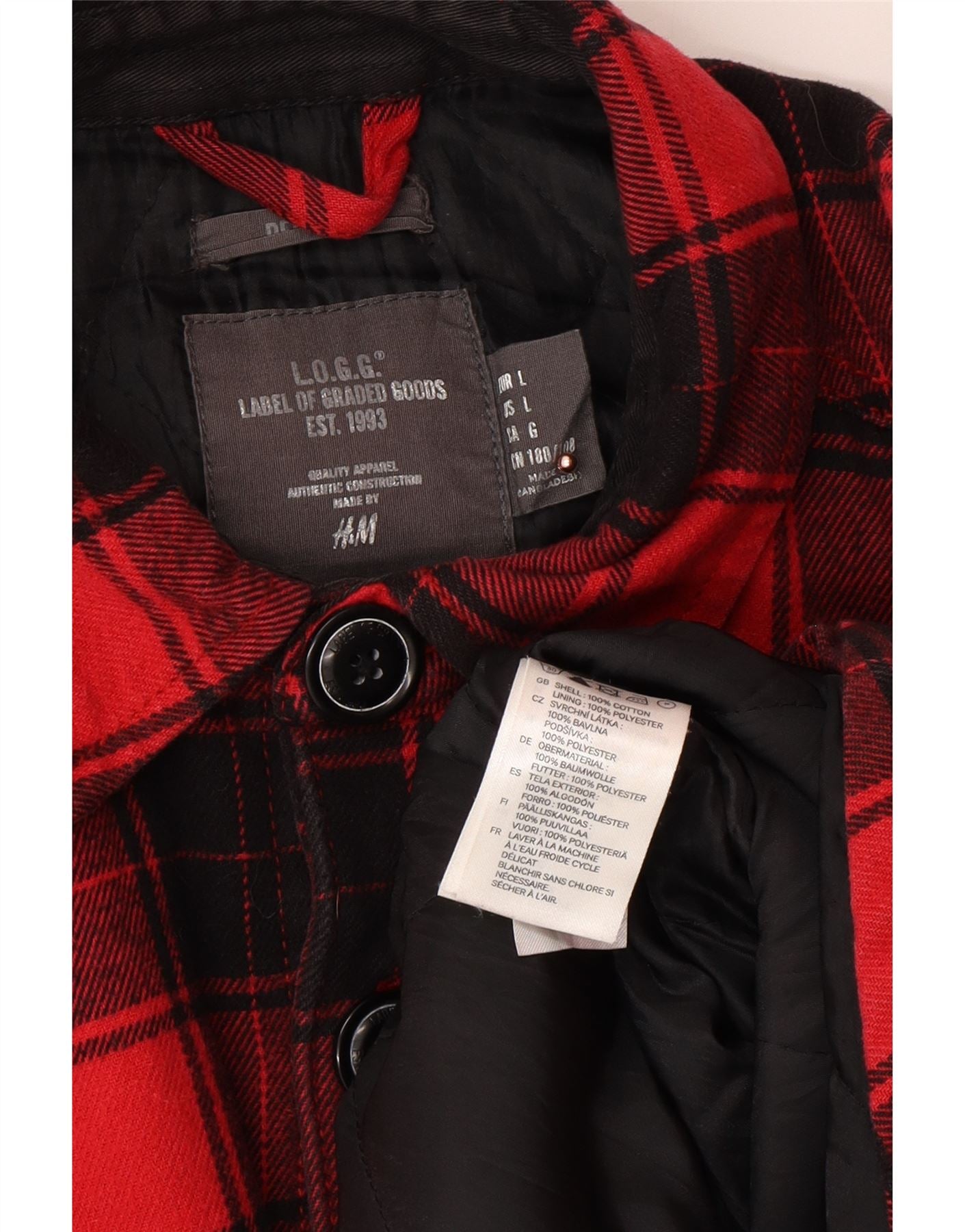 H&M Mens Lumberjack Flanel Shirt Large Pink Ternet Bomuld