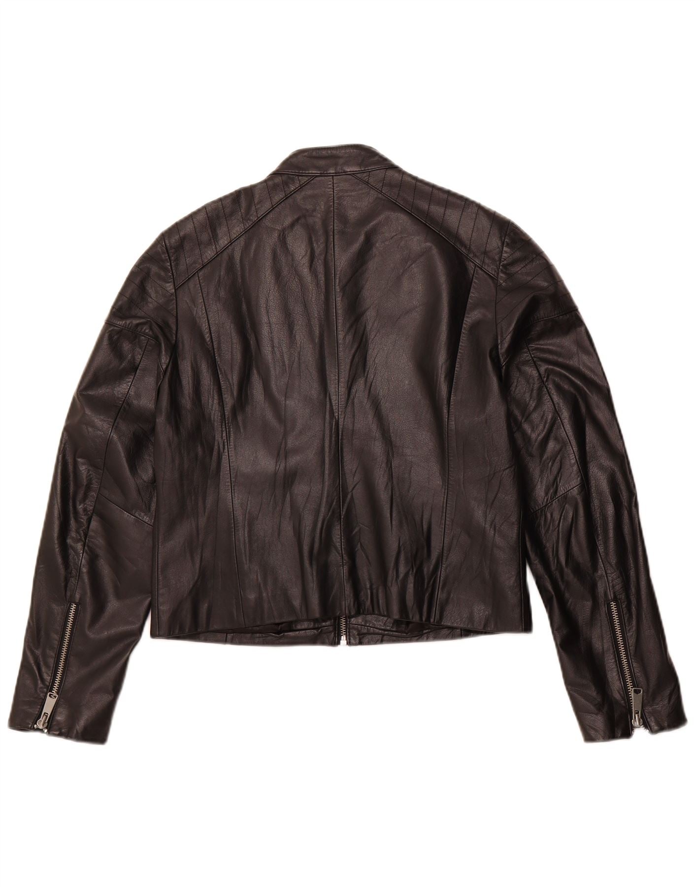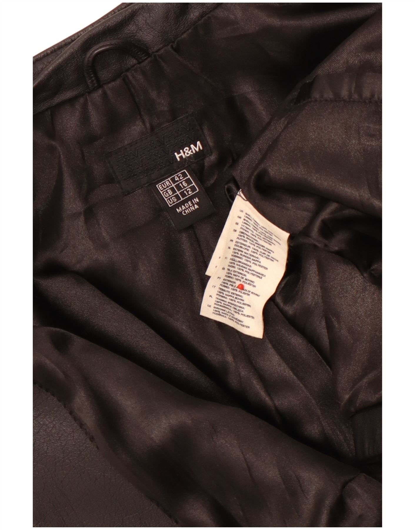 H&M Womens Crop Læderjakke UK 16 Stor sort læder