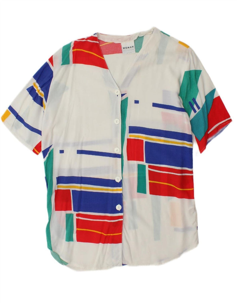 H&M Womens Short Sleeve Shirt Blouse UK 18 XL White Patchwork Viscose