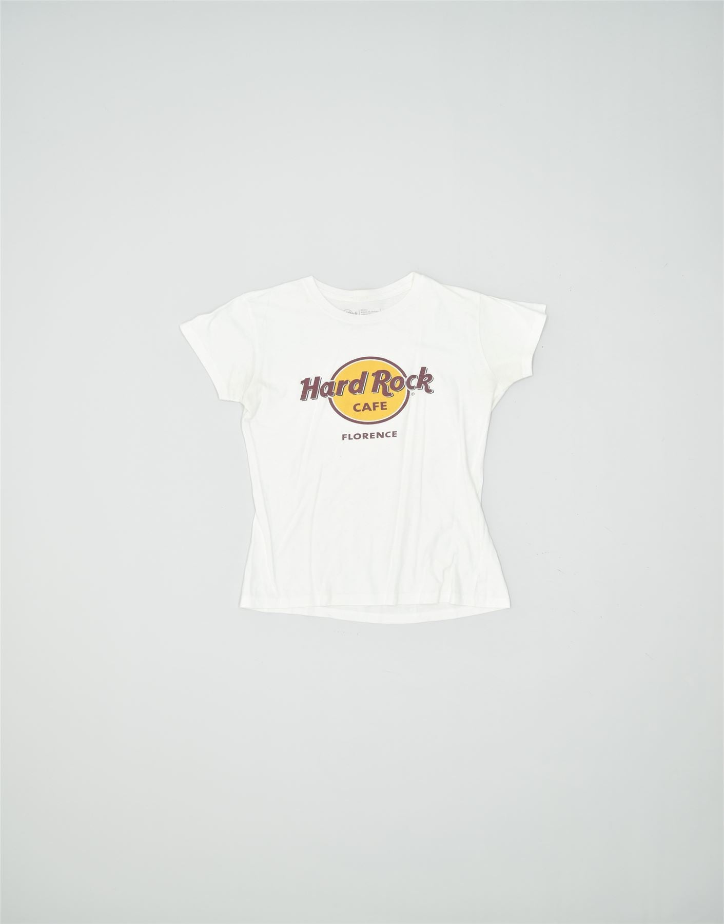 HARD ROCK CAFE Dame Florence Grafisk T-Shirt Top UK 10 Small White