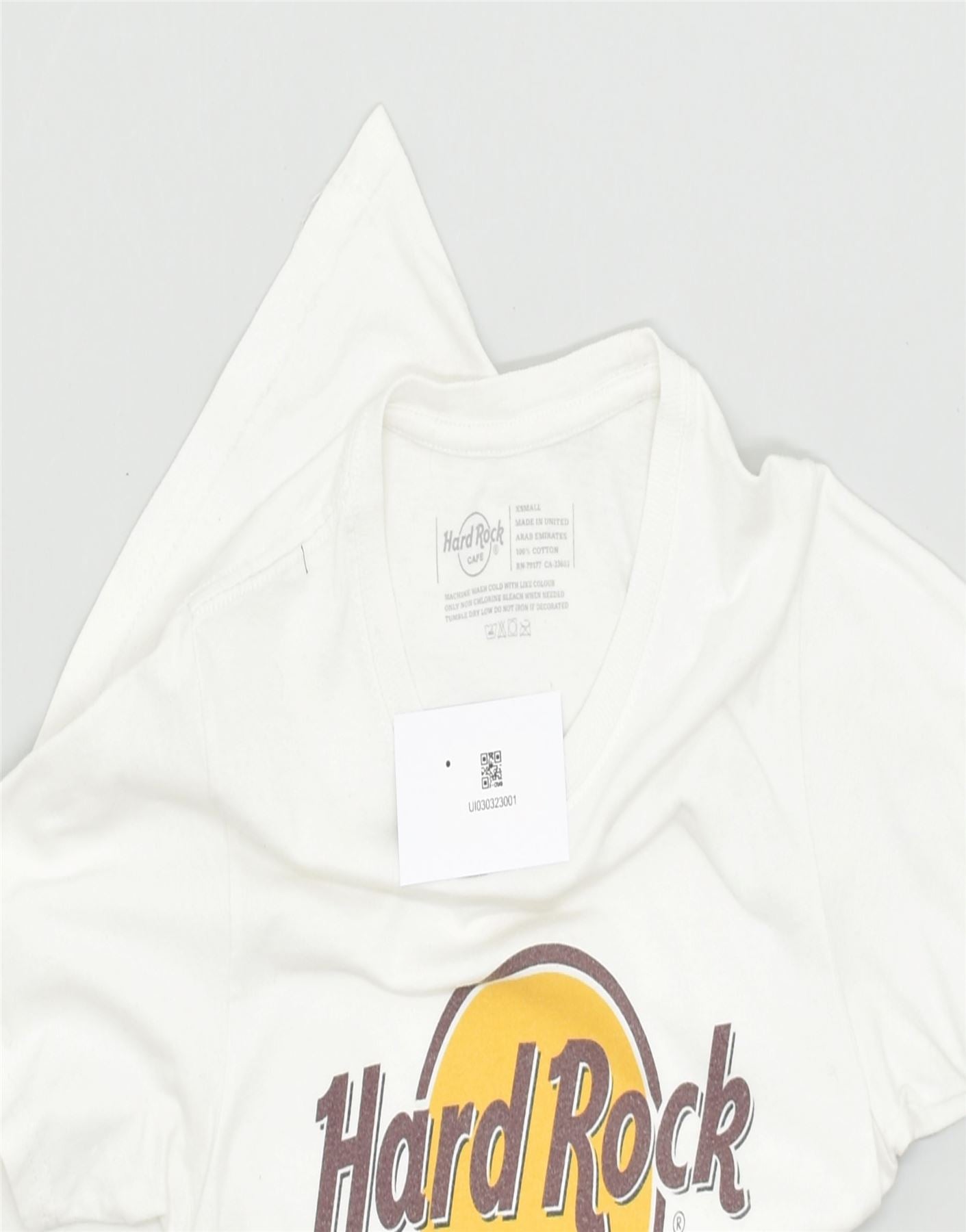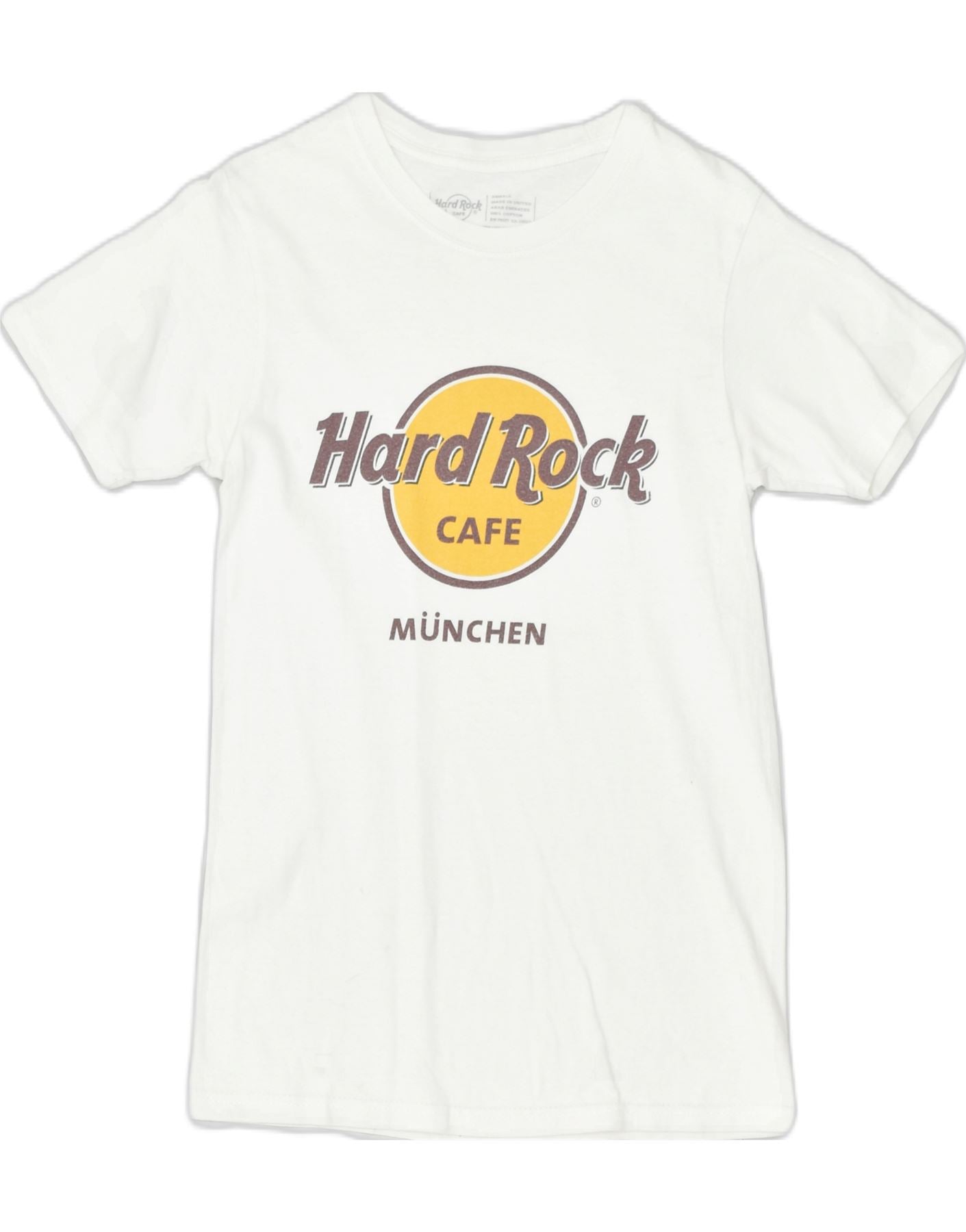 HARD ROCK CAFE Dame München Grafisk T-Shirt Top UK 6 XS Hvid Bomuld