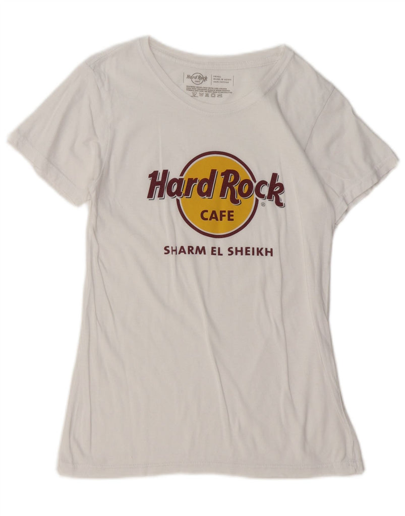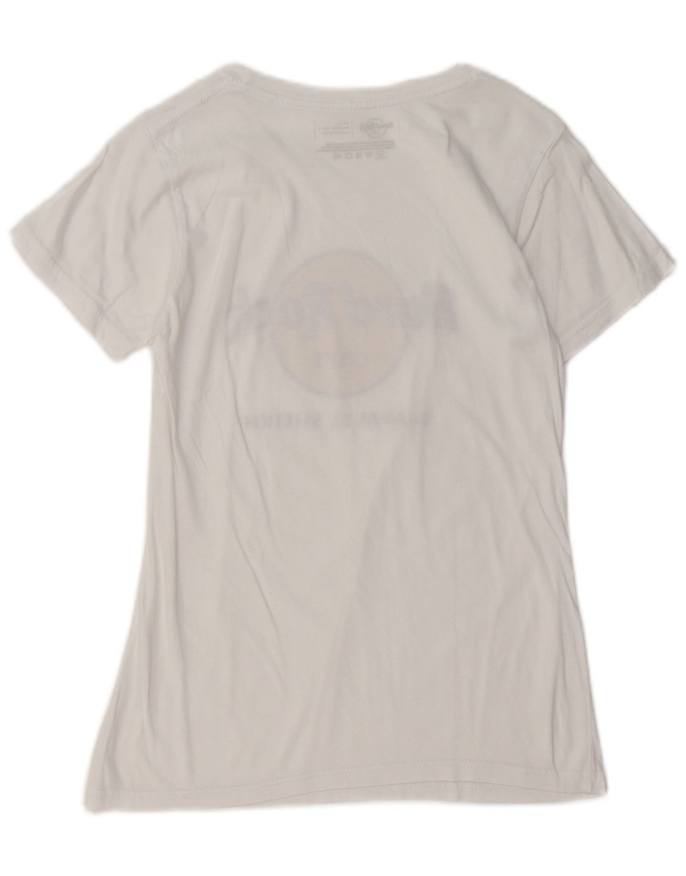 HARD ROCK CAFE Dame Grafisk T-Shirt Top UK 10 Small White
