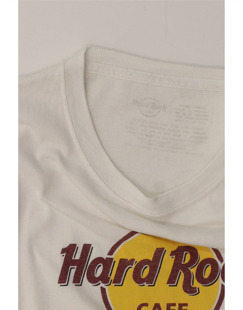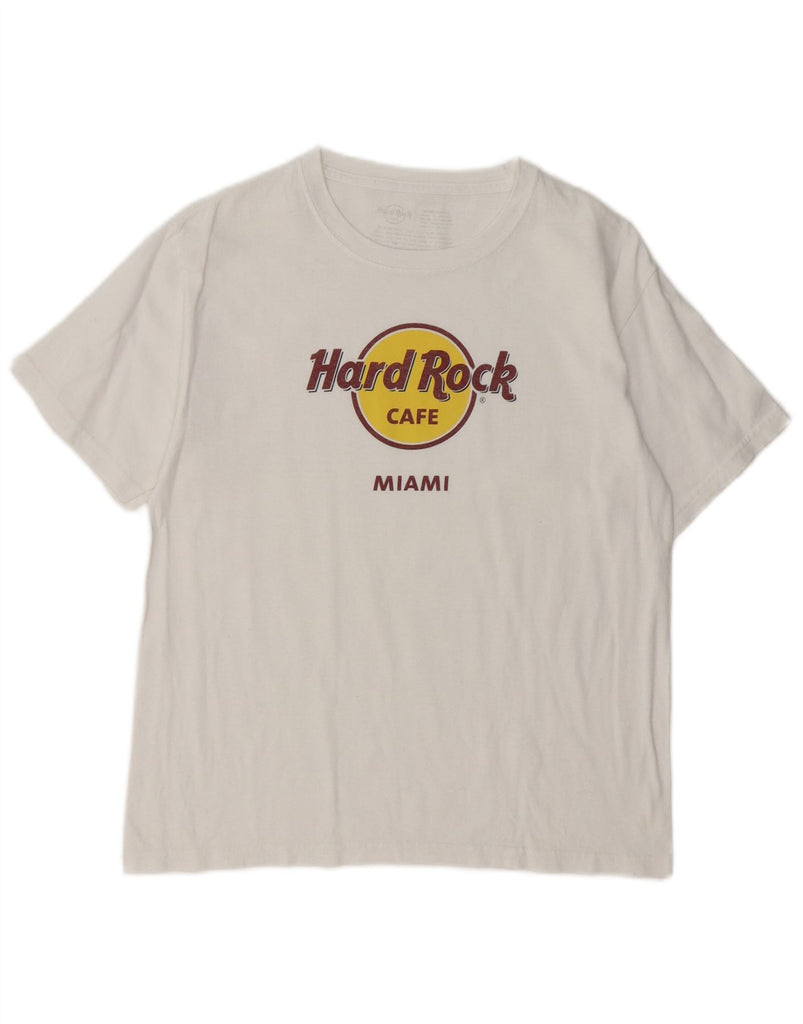 HARD ROCK CAFE Dame Miami Grafisk T-Shirt Top UK 12 Medium Hvid Bomuld