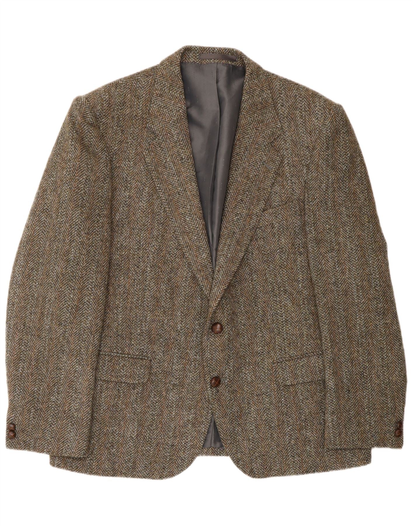 HARRIS TWEED Herre 2-knaps blazerjakke UK 46 3XL Grøn sildebensuld