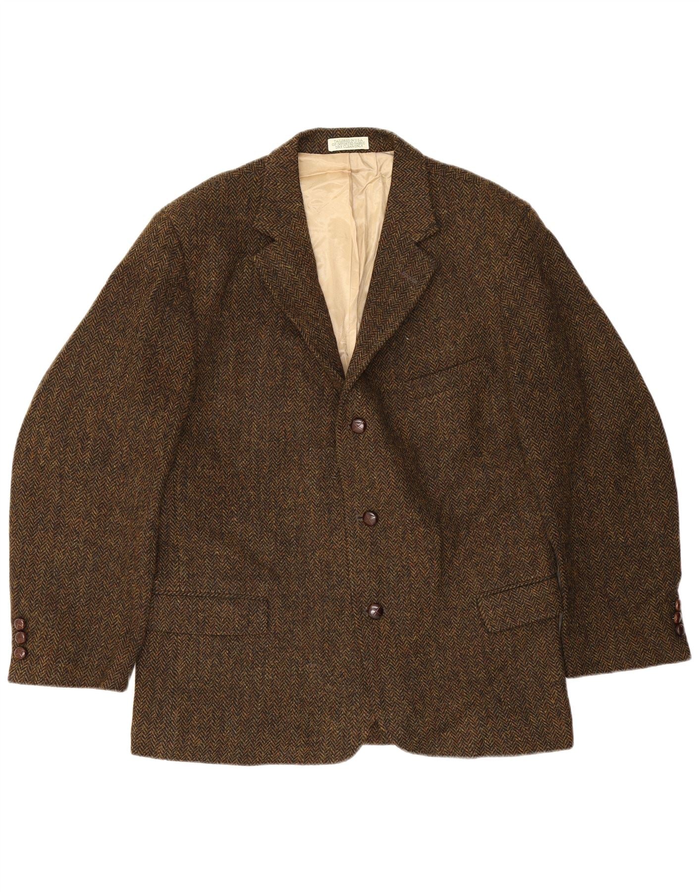 HARRIS TWEED Mens Long 3 Button Blazer Jacket UK 44 2XL Brown Herringbone