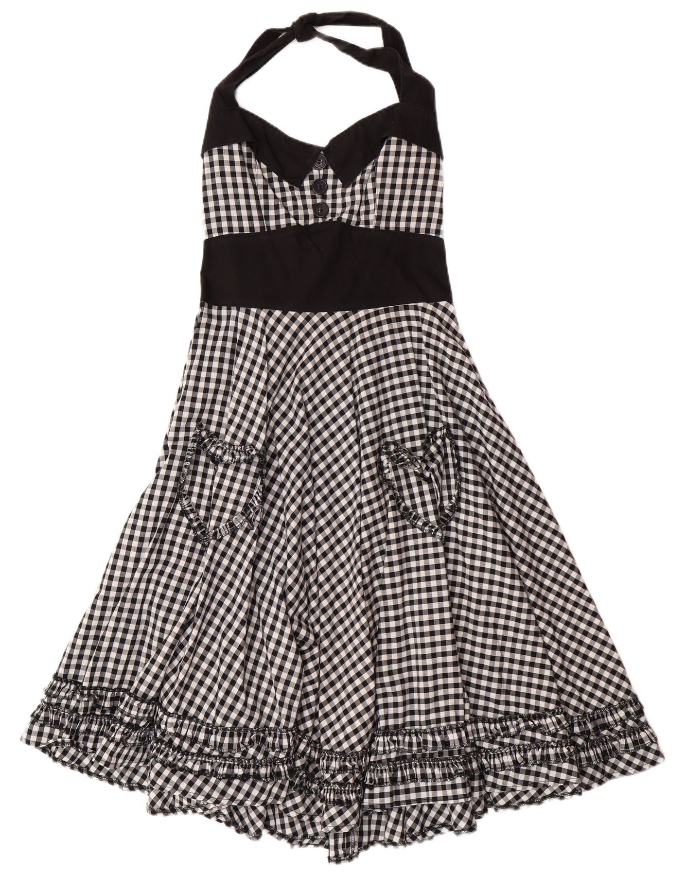 HELL BUNNY Dame Halter Dress UK 8 Small Black Gingham Cotton