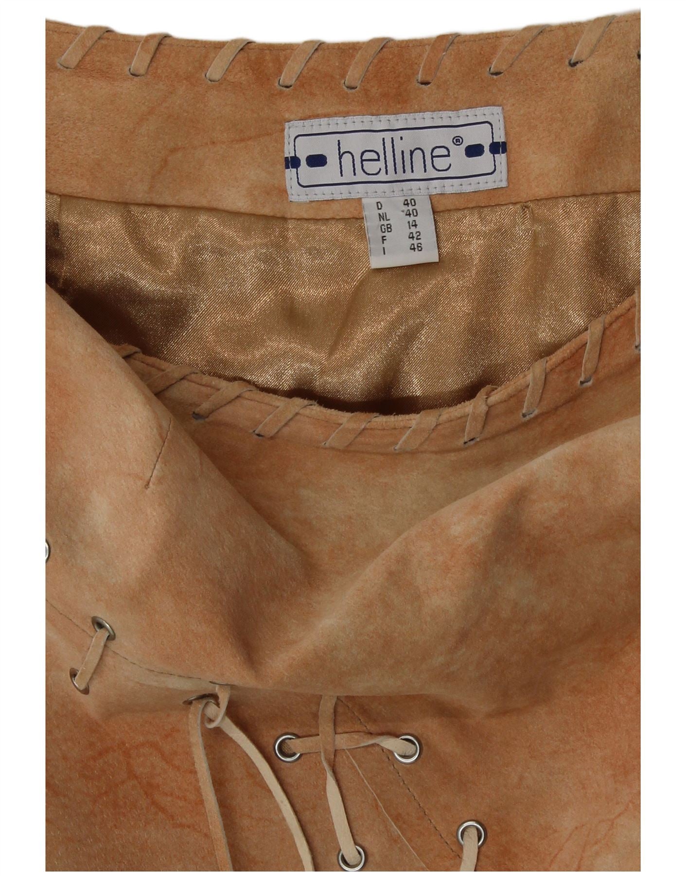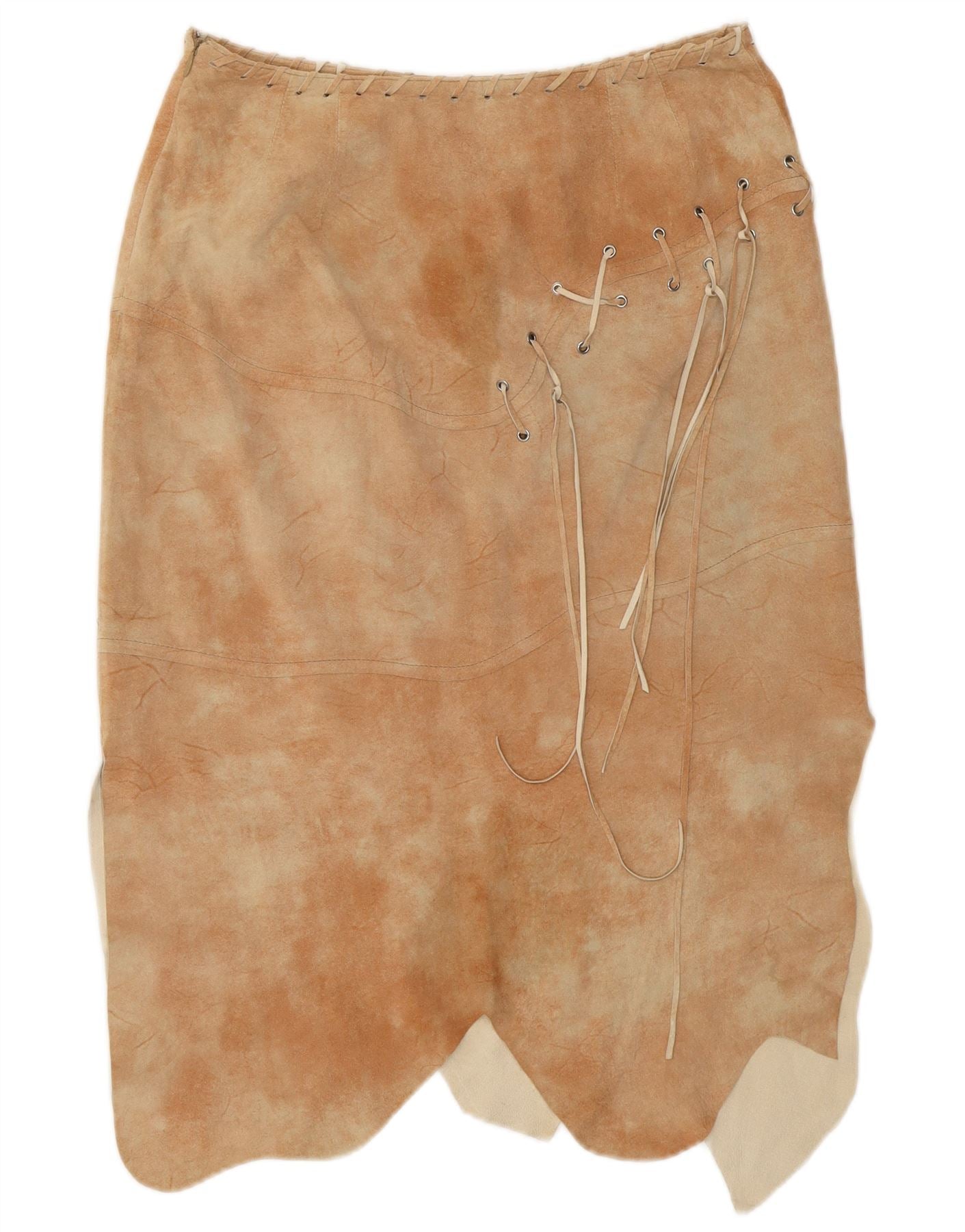 HELLINE kvinders asymmetrisk nederdel UK 14 Large W30 Beige Tie Dye Læder