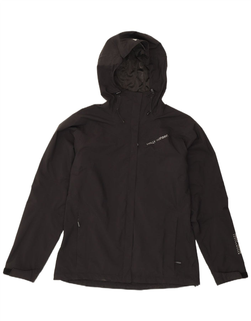 HELLY HANSEN Womens Hooded Rain Jacket UK 16 Large Black Polyamide Modern
