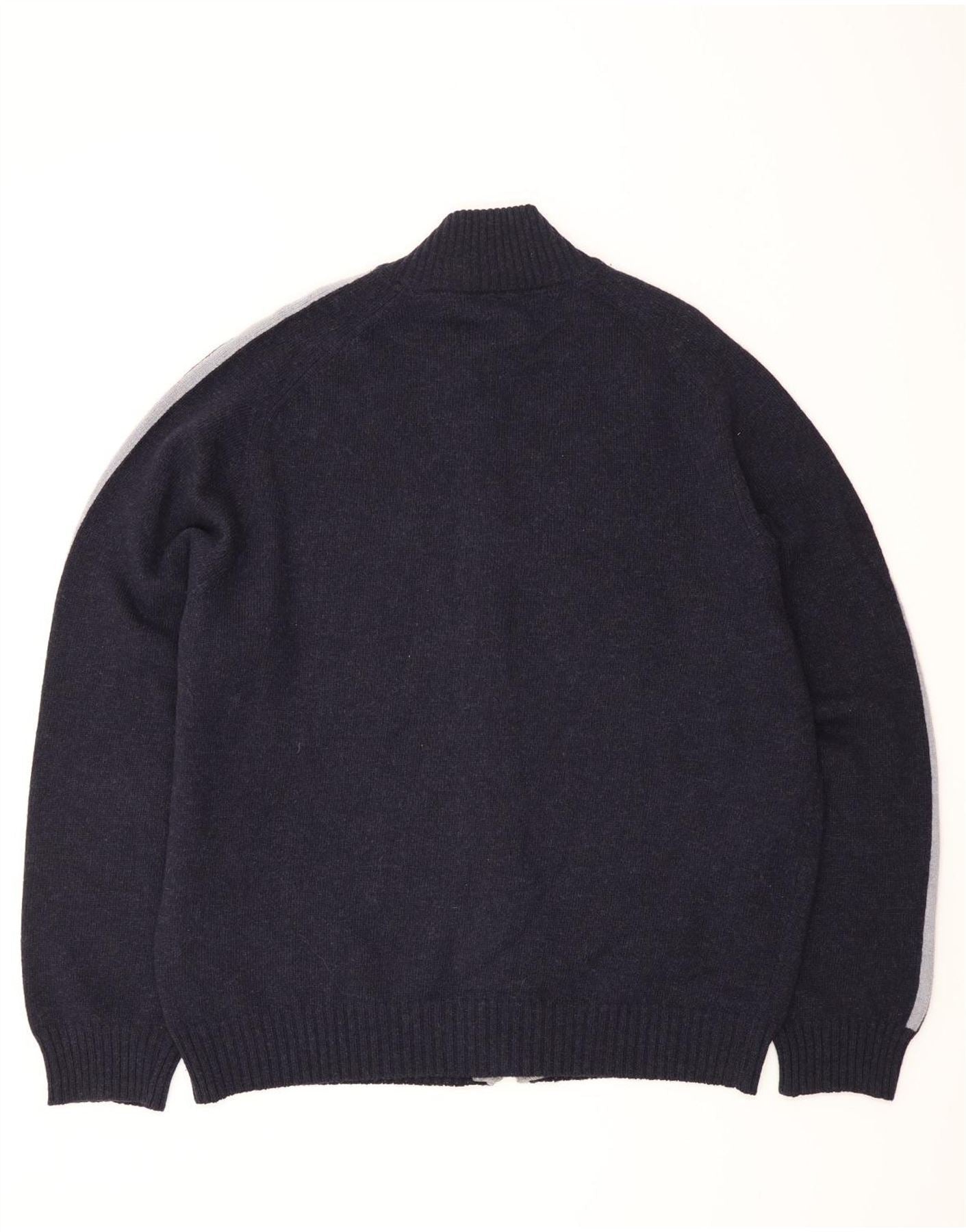 - AI beskrivelse: Denne Henry Cottons herre cardigan sweater er lavet af 100 procent ren ny uld, der tilbyder en luksuriøs strikstruktur. Den har en rig marineblå nuance med markante grå striber langs de lange ærmer. Kraveudskæringen og fuld lynlåslukning giver et klassisk, alsidigt look. En normal pasform sikrer behageligt slid. Dette stykke kombinerer varme med sofistikeret stil, perfekt til lagdeling.