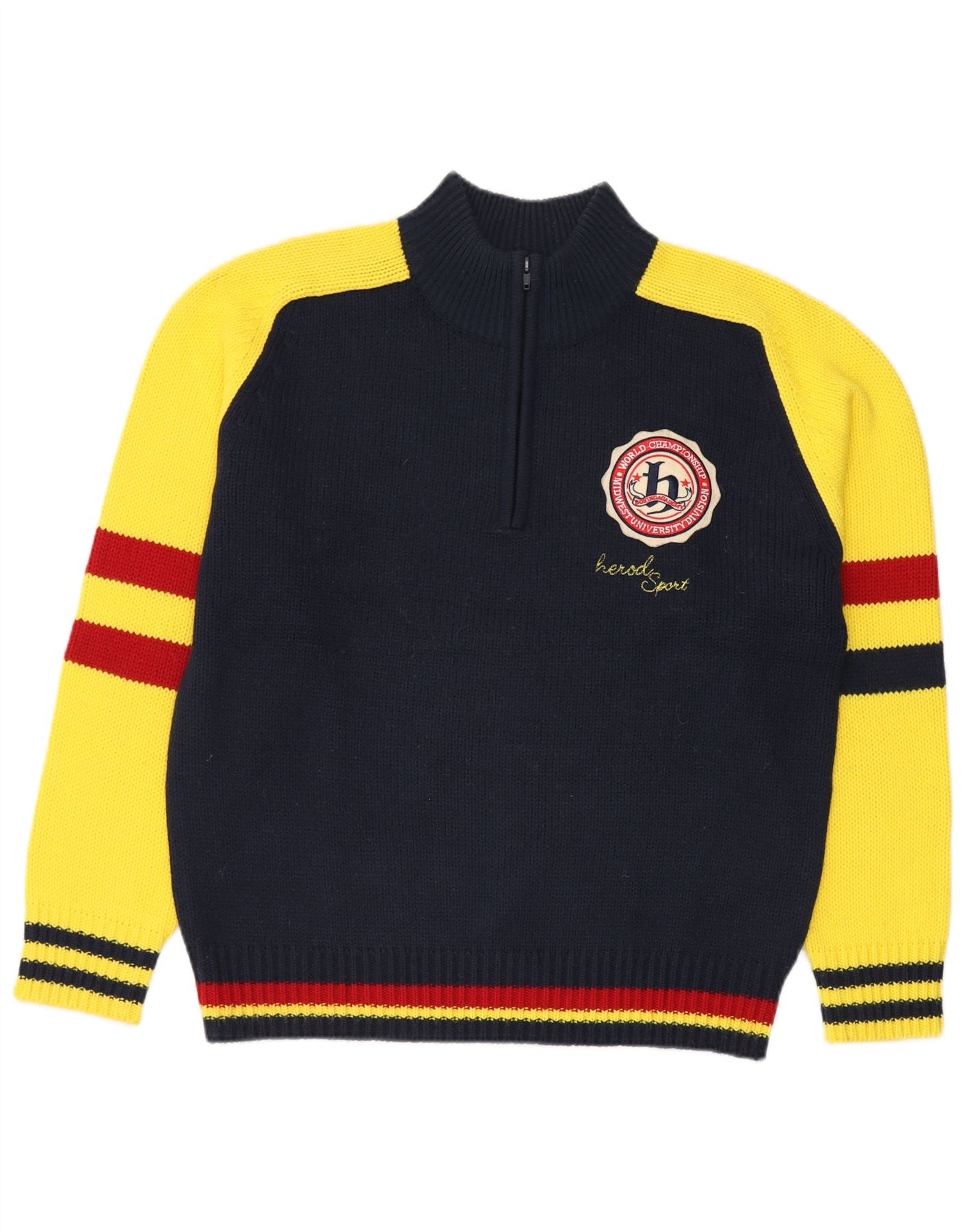 HEROD SPORT Dame sweater med lynlås-hals UK 18 XL Navy Blue Colourblock