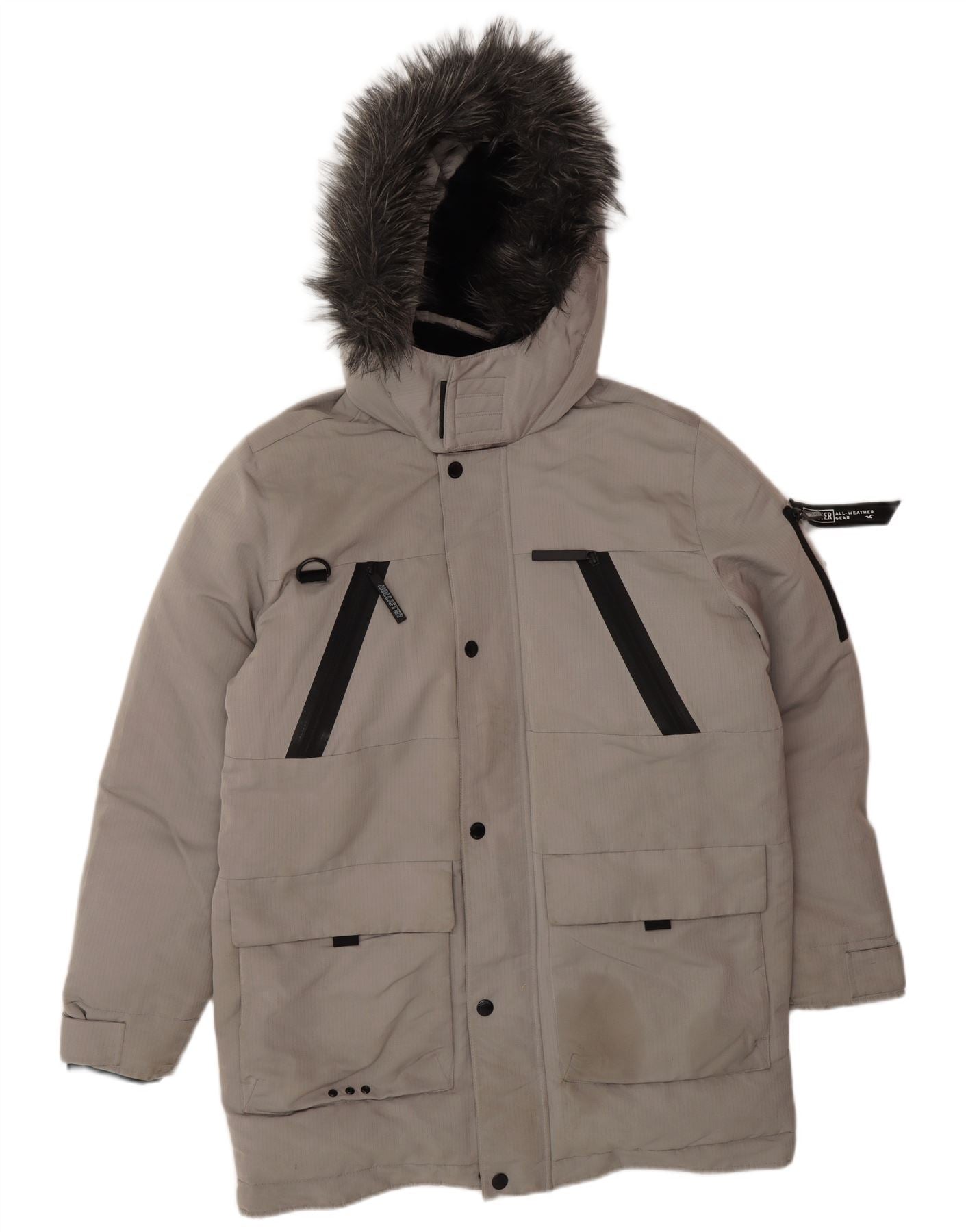 PUMA Mens Graphic Hooded Rain Jacket UK 40 Large Blue Colourblock Nylon