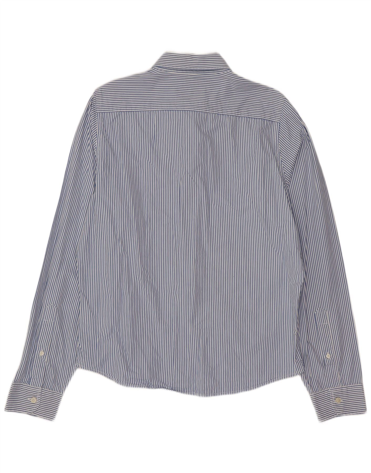 - AI beskrivelse: Denne Hollister herreskjorte er lavet af 100 procent bomuldsvævet stof. Den har et klassisk blåt og hvidt stribet mønster. Kraveudskæringen og fuld knap foran giver et smart, tidløst look. Lange ærmer med manchetter med knapper fuldender designet. En enkelt brystlomme og subtil logoaccent tilføjer praktiske detaljer. Den almindelige pasform sikrer behageligt slid.