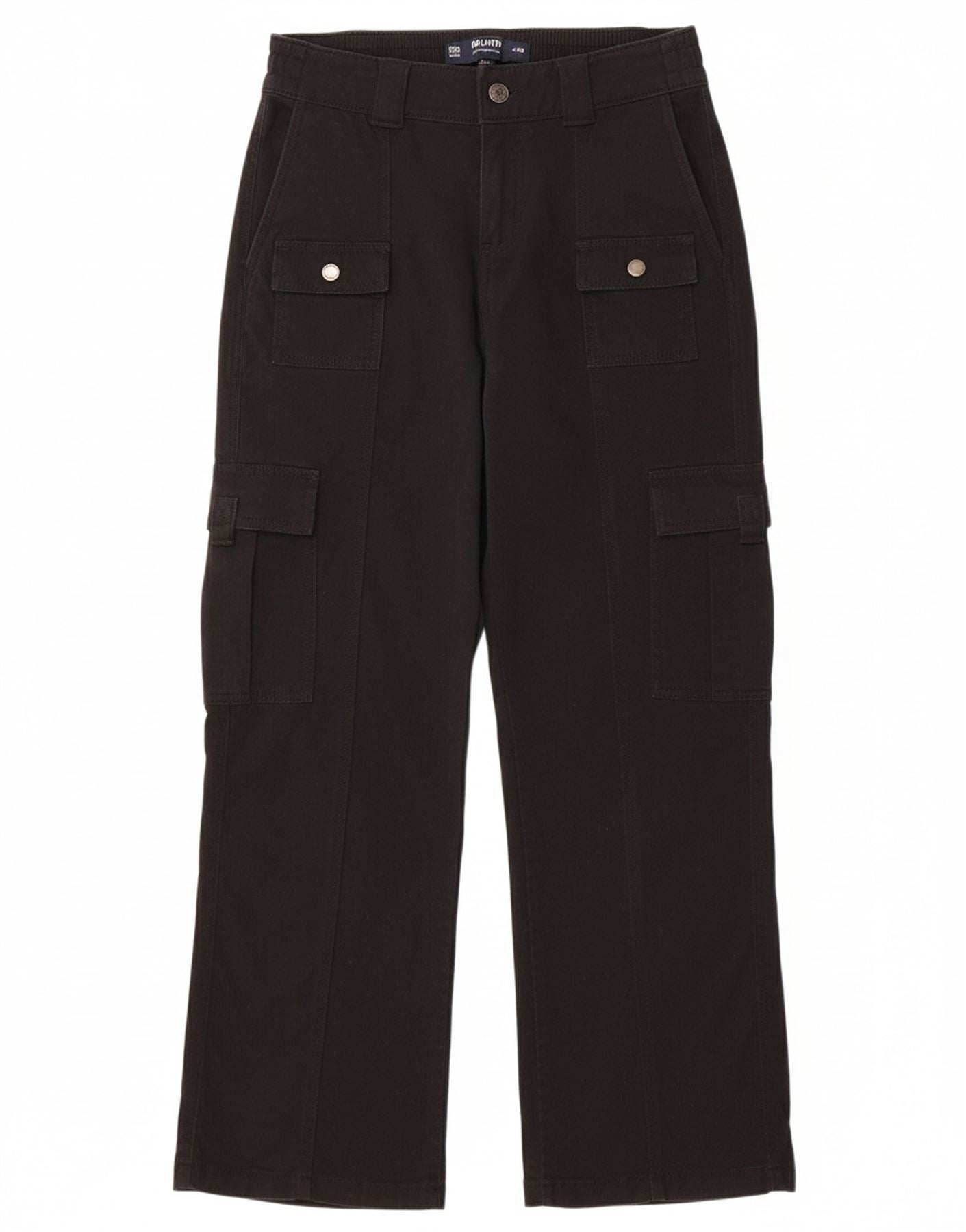 - AI Description: This Hollister mens black corduroy cargo trousers are crafted from a soft cotton blend. The fabric is 99 percent cotton and 1 percent elastane, providing comfort and a slight stretch. They feature a low-rise baggy fit, offering a relaxed and modern silhouette. A classic button closure secures the waist. Multiple utility pockets provide practical detailing and add to the cargo style. The corduroy texture adds a tactile finish.
