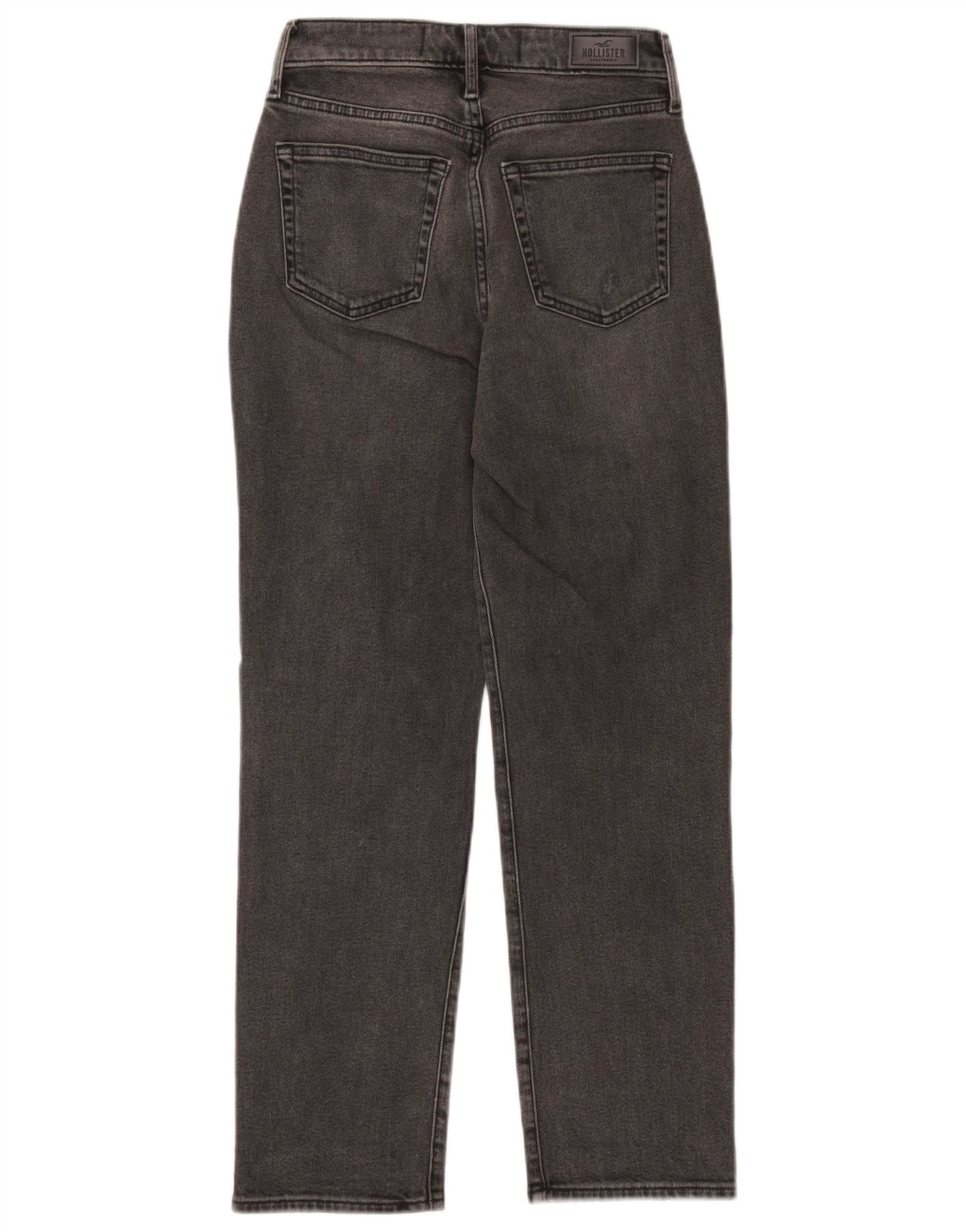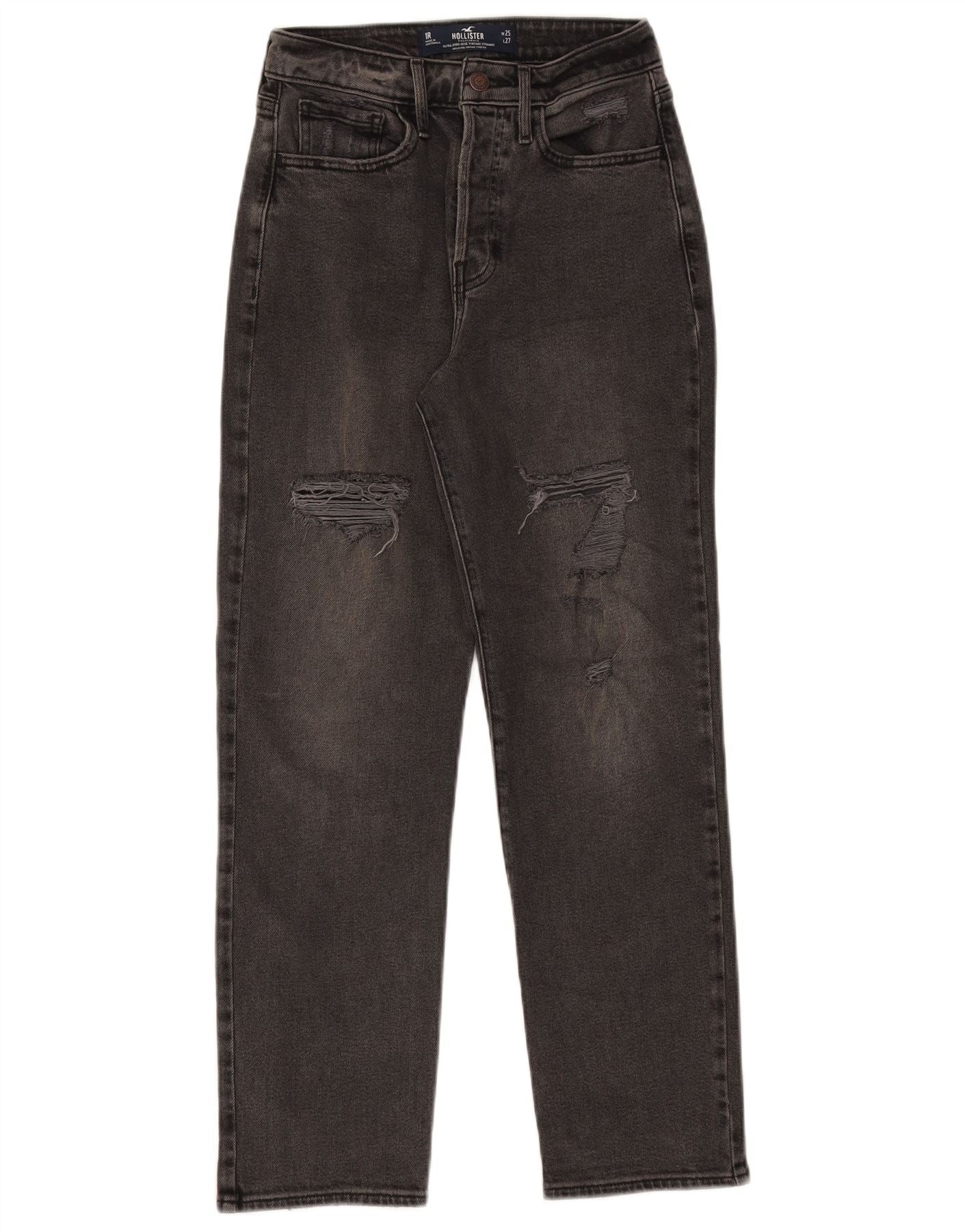 HOLLISTER Dame Distressed High Rise Straight Jeans W25 L27 Sort Bomuld