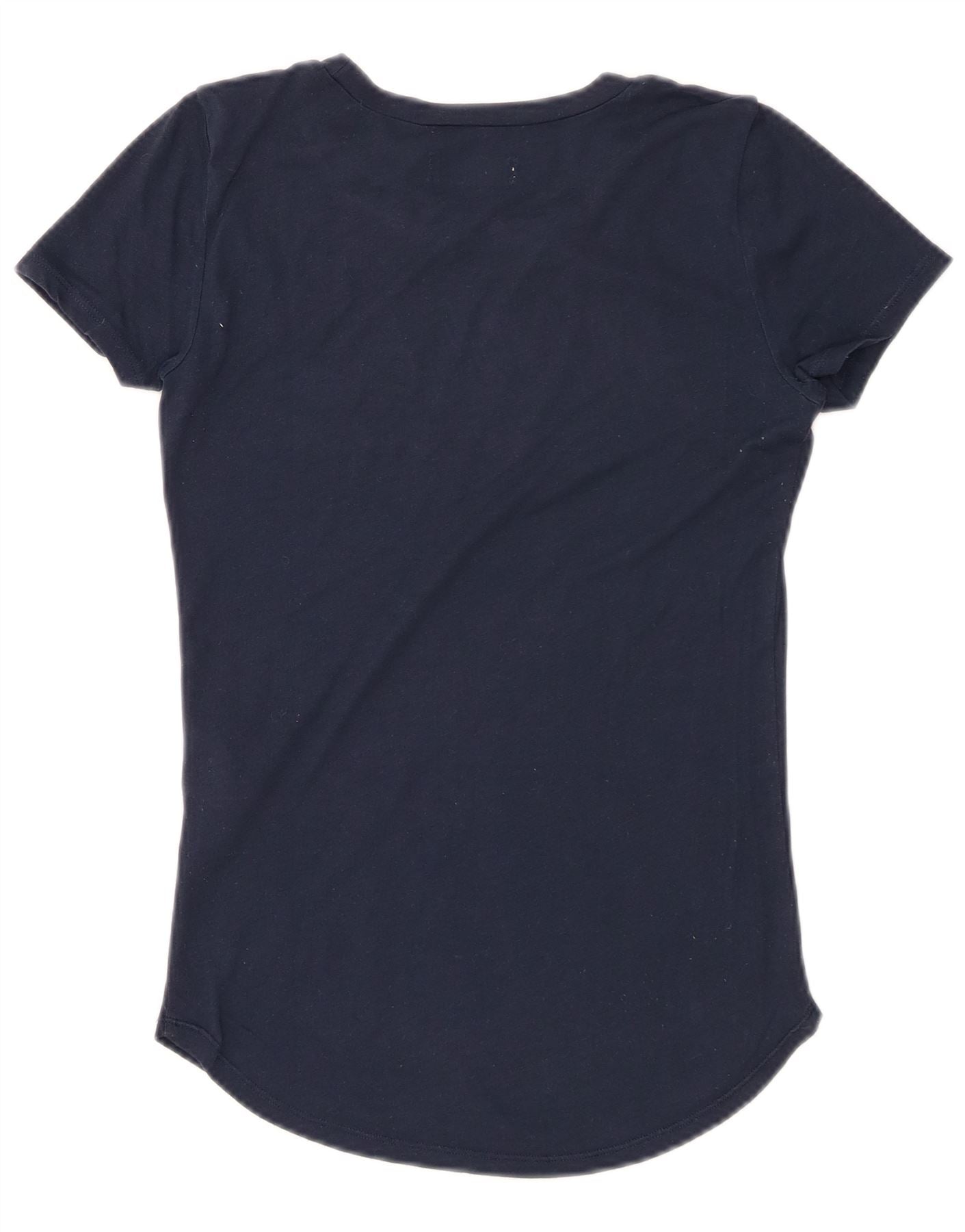 HOLLISTER Grafisk T-shirt top til kvinder UK 6 XS marineblå bomuld