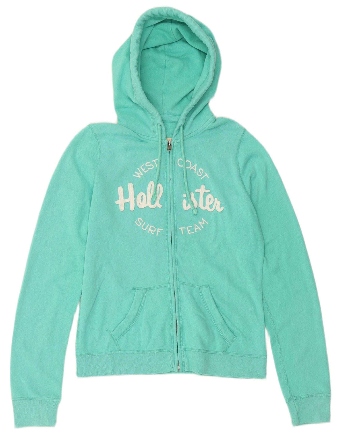 HOLLISTER Grafisk hættetrøje med lynlås til kvinder UK 14 Medium turkis bomuld