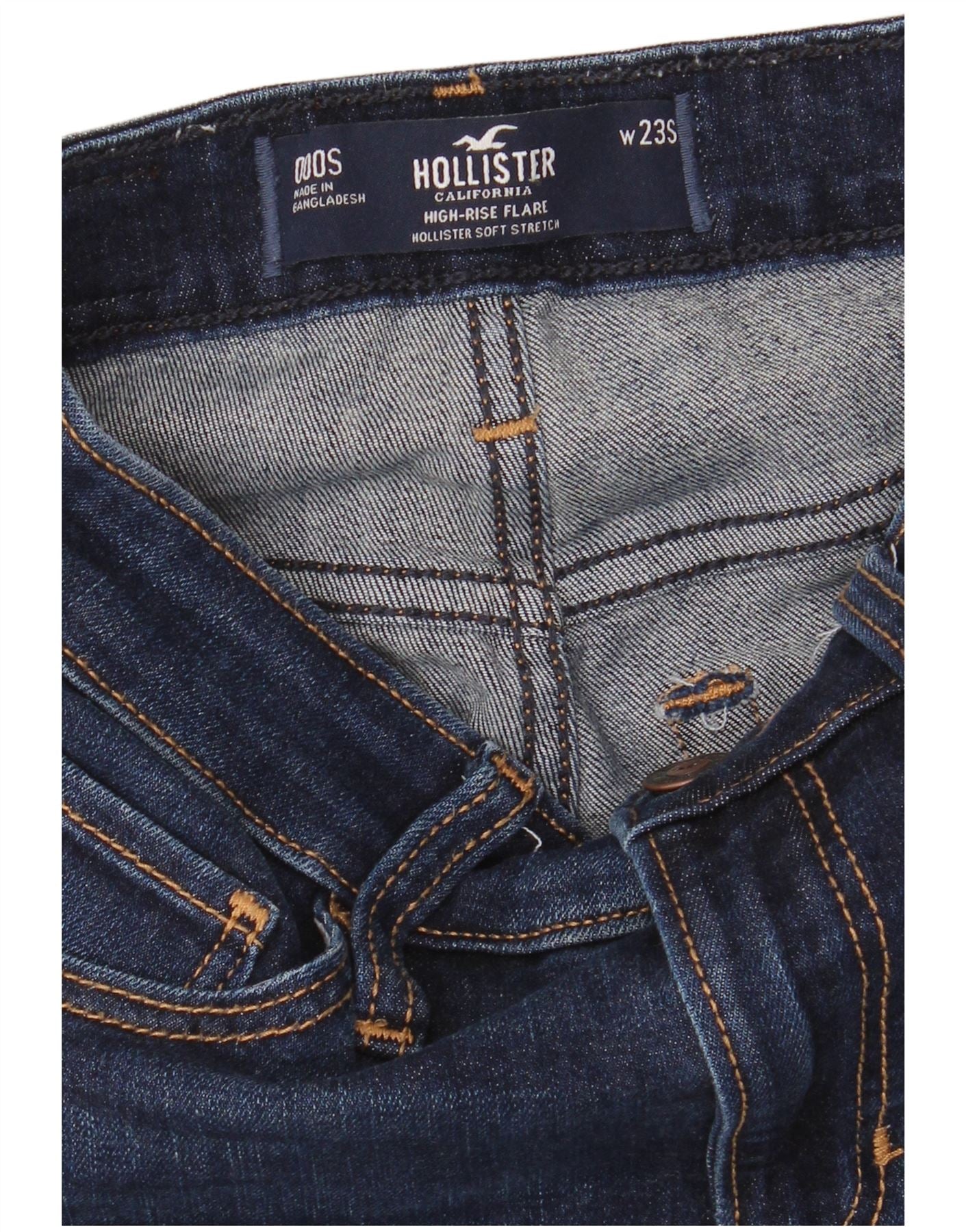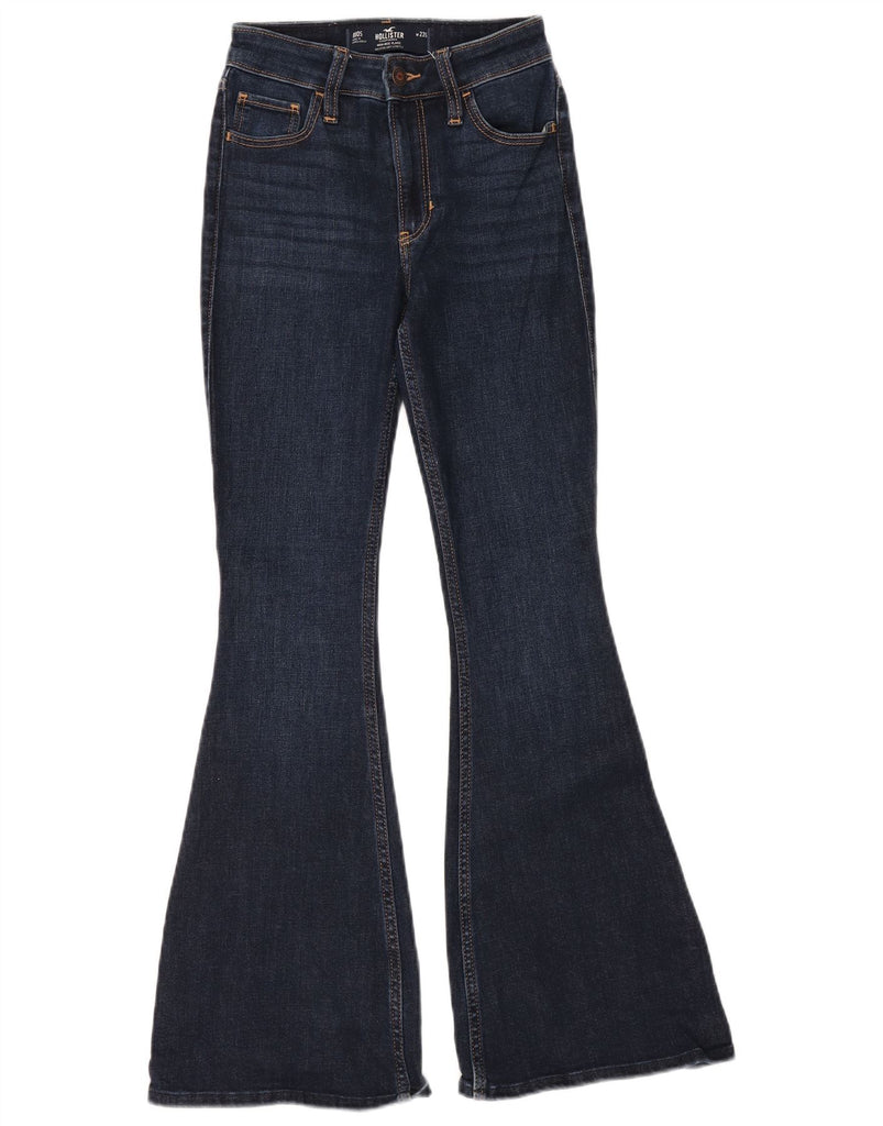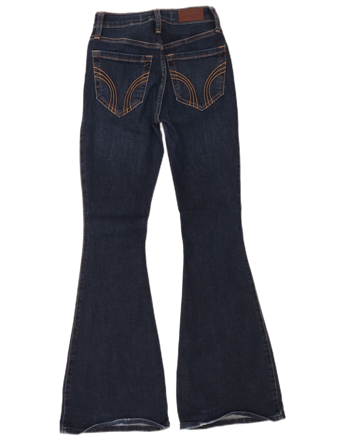 HOLLISTER Womens High Rise Flared Jeans W23 L30 Navy Blue Cotton