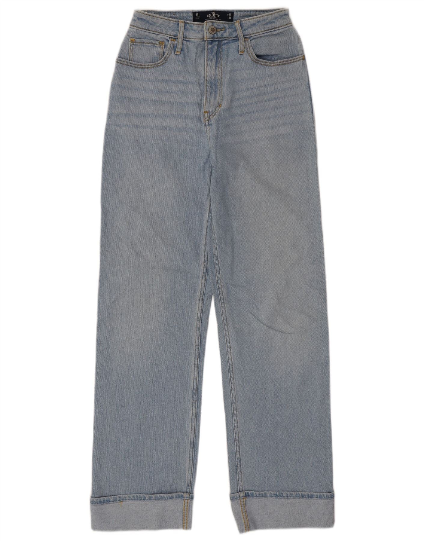 HOLLISTER Højtaljede lige jeans til kvinder W25 L31 blå bomuld