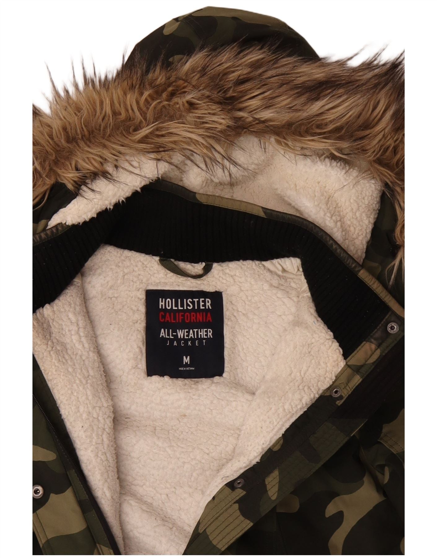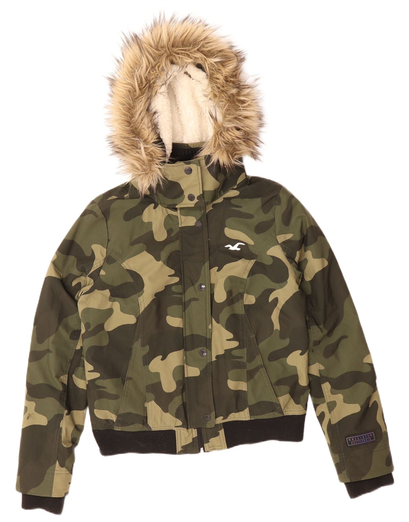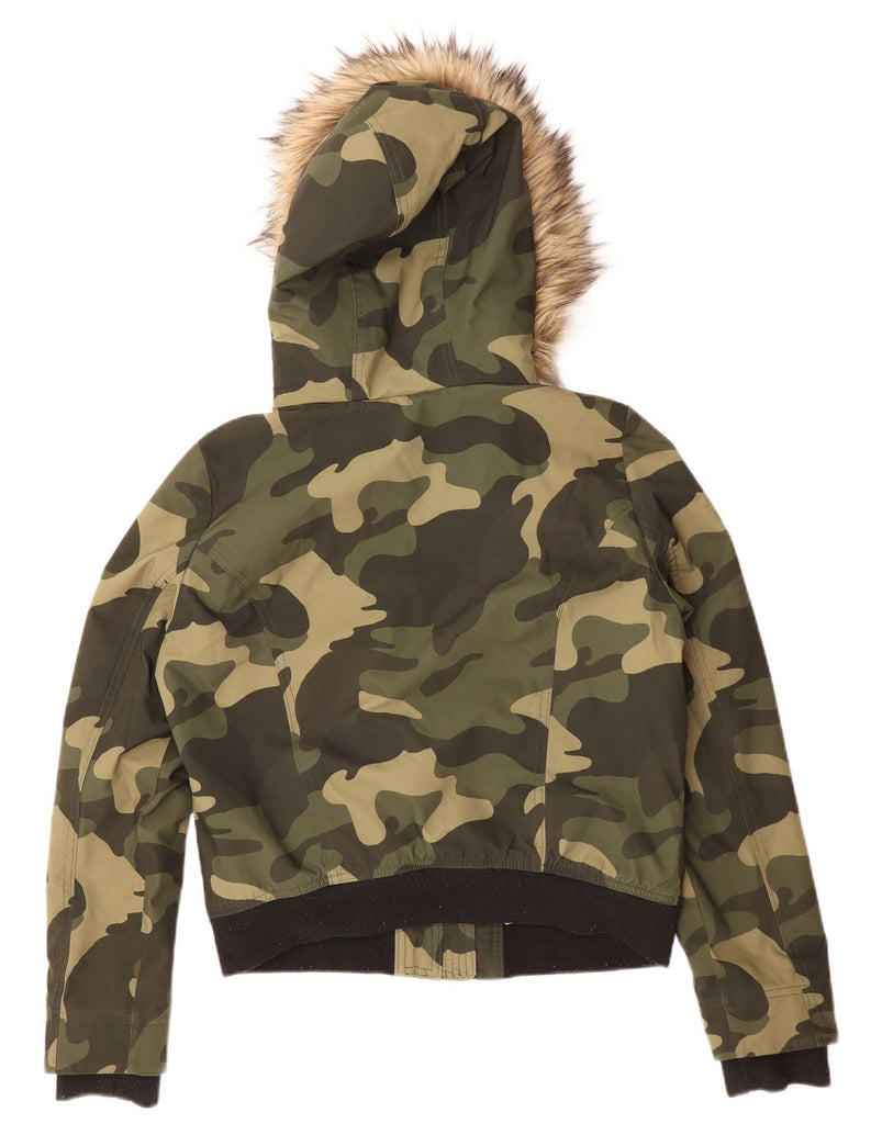 HOLLISTER Womens Hooded Sherpa Jacket UK 14 Medium Green Camouflage