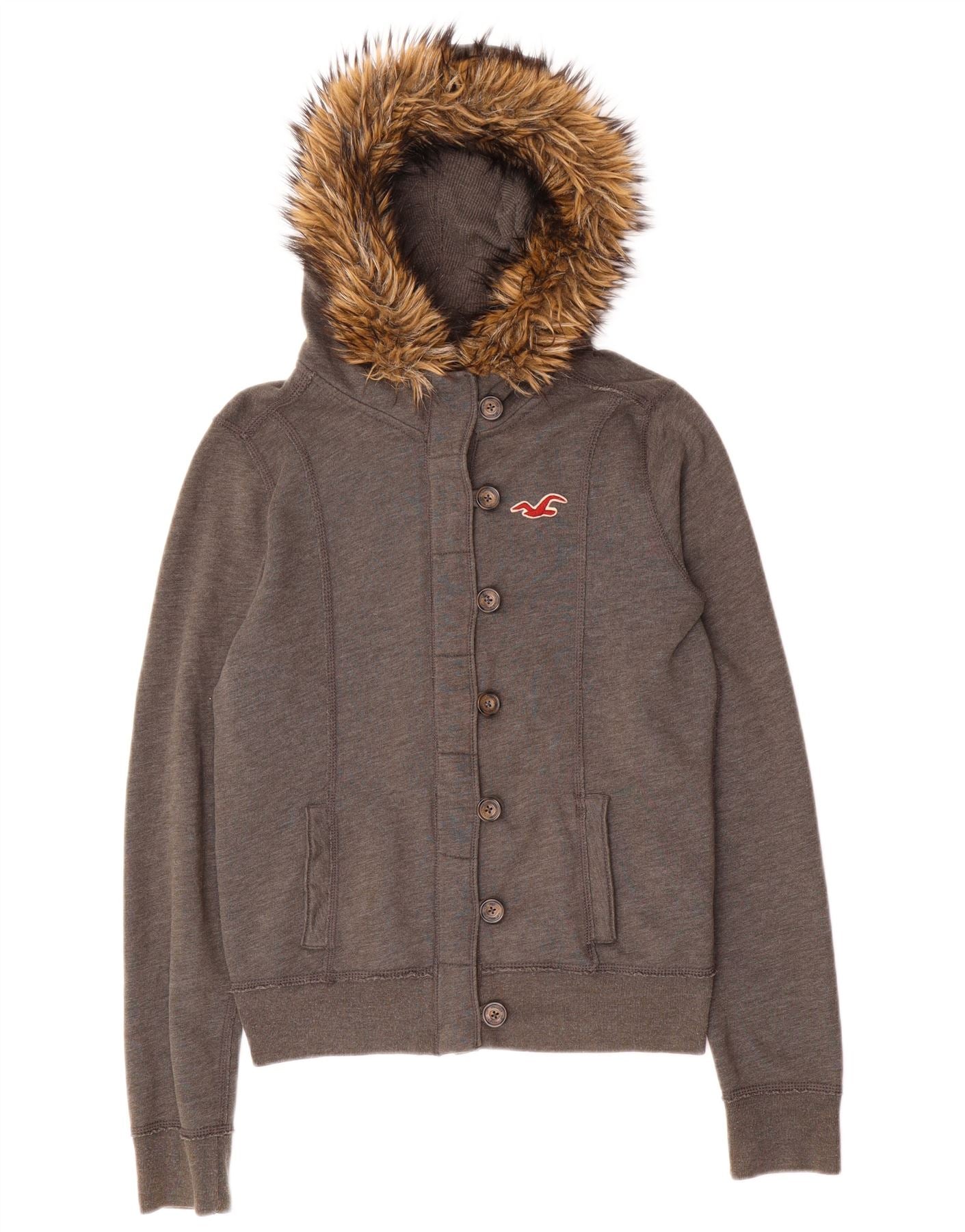 HOLLISTER hættetrøje til kvinder med lynlås UK 16 Large Grå Akryl