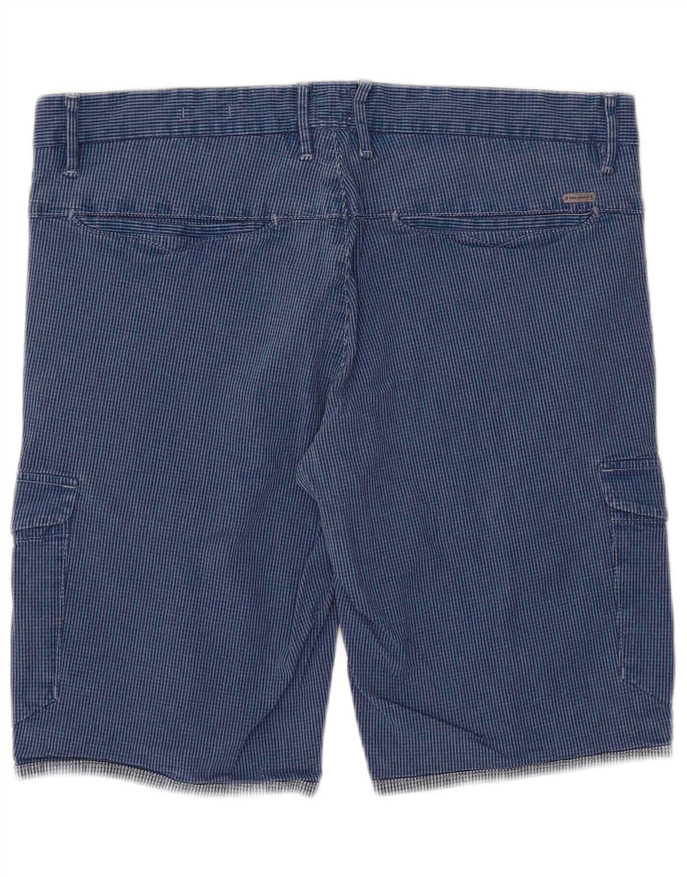 Hugo Boss Herre Cargo Shorts EU 48 Medium W34 Blue Gingham Cotton