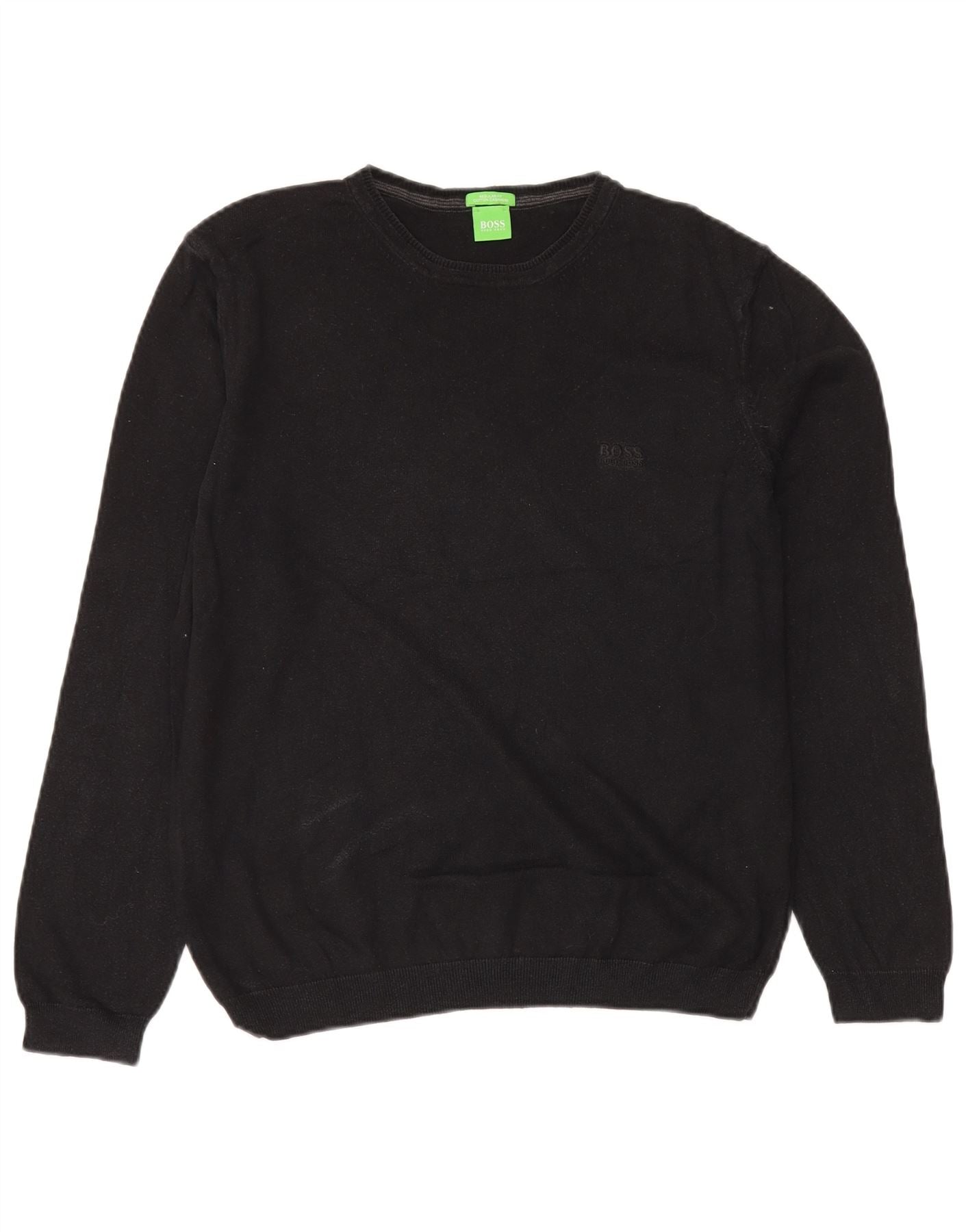 Hugo Boss Herre Regular Fit Crew Neck Jumper Sweater Stor Sort Bomuld
