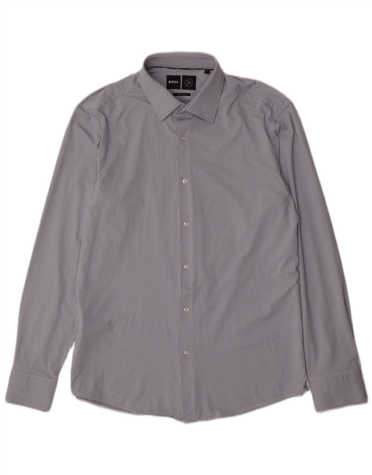 Hugo Boss Herre Regular Fit skjorte str. 41 16 Stor blå plettet polyamid