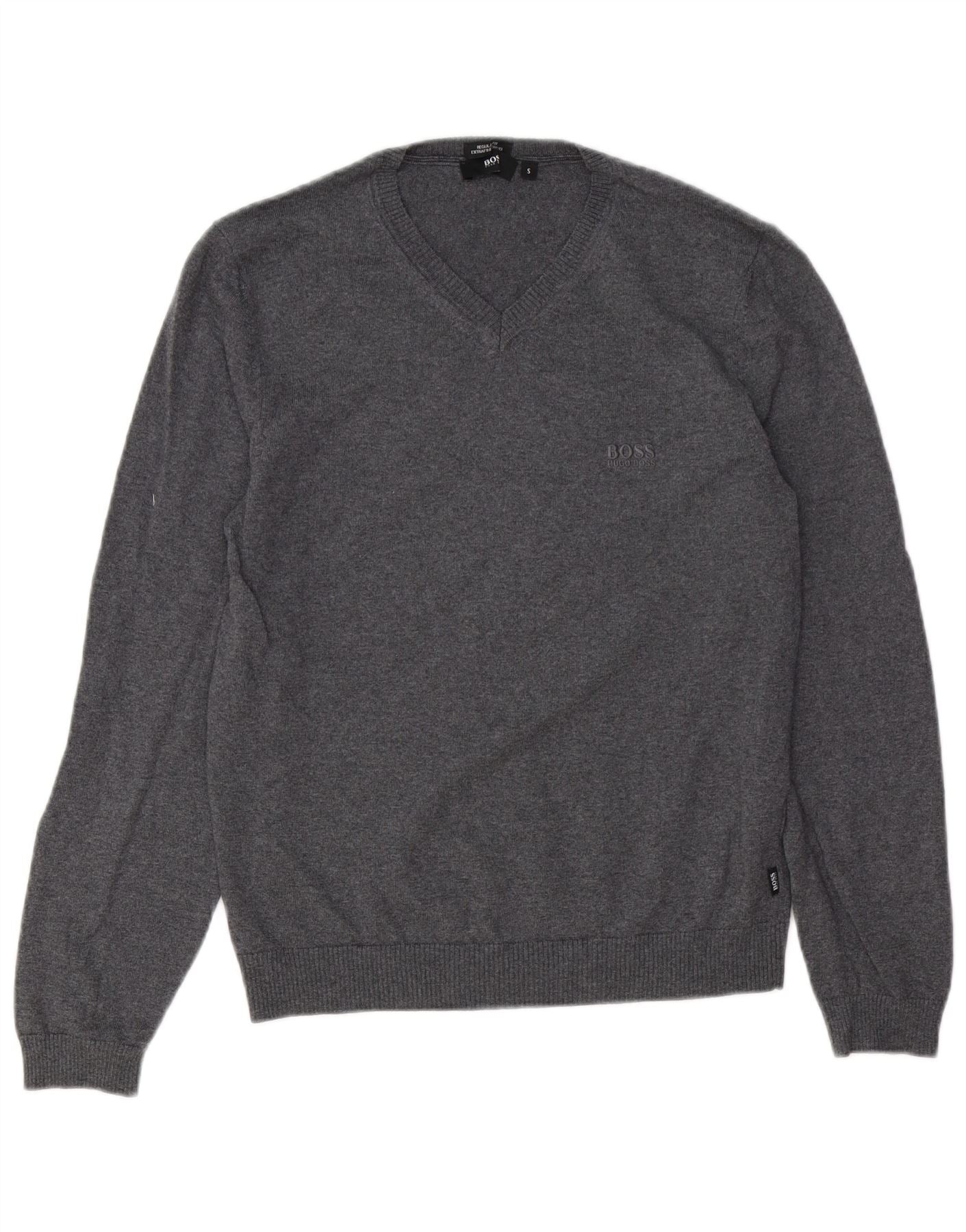 HUGO BOSS Herre Regular Fit V-hals sweater Small Grey Virgin Wool