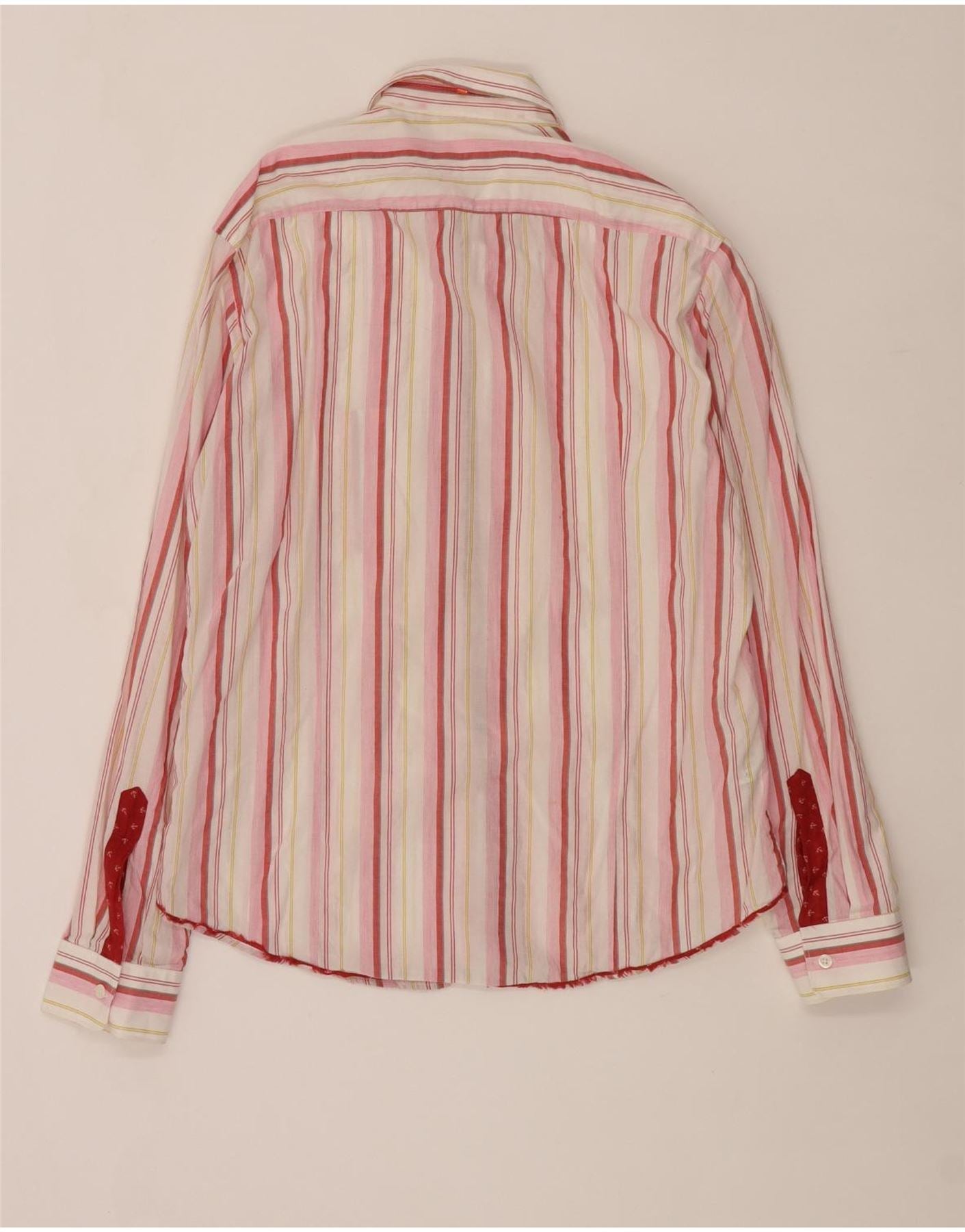 - AI beskrivelse: Denne Hugo Boss herreskjorte er lavet af et behageligt bomuldsblandingsstof. Den har et levende flerfarvet slikstribemønster i rød, pink og hvid. Kraveudskæringen og fuld knap foran giver et klassisk, smart look. Lange ærmer afsluttes med pæne manchetter. En normal pasform sikrer behageligt slid. Denne skjorte indeholder praktiske lommer, der blander stil med funktionalitet.