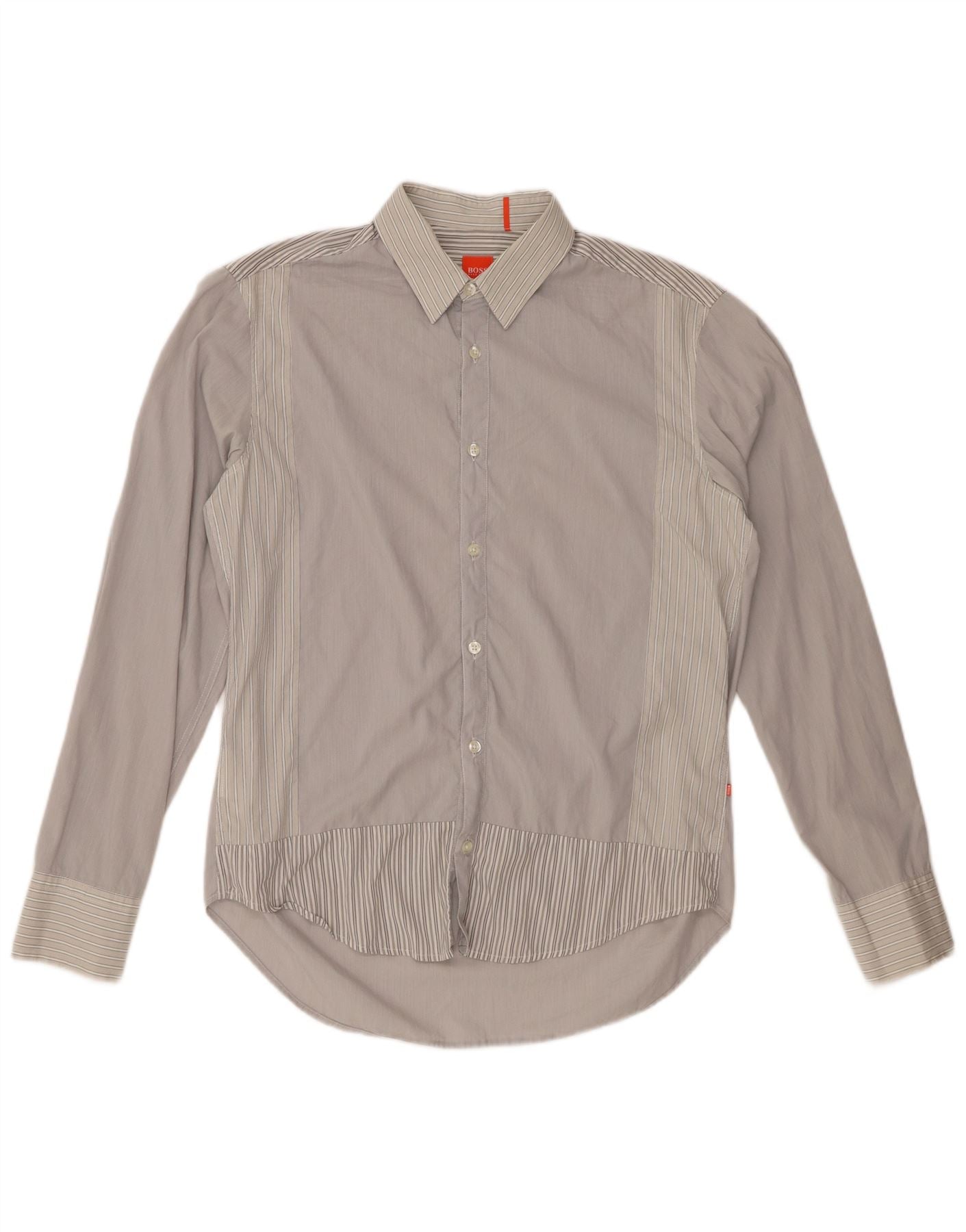 Hugo Boss herreskjorte mellemgrå stribet bomuld