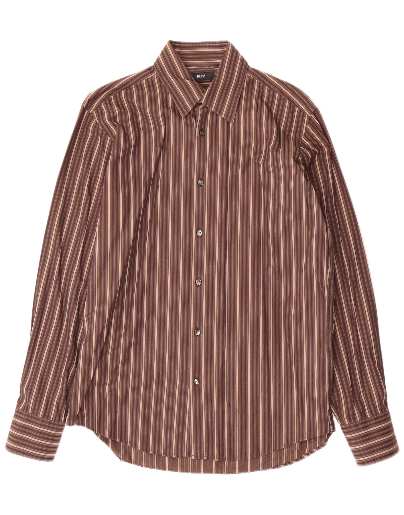 Hugo Boss Herreskjorte str. 39 15 /2 Mellem brun stribet bomuld