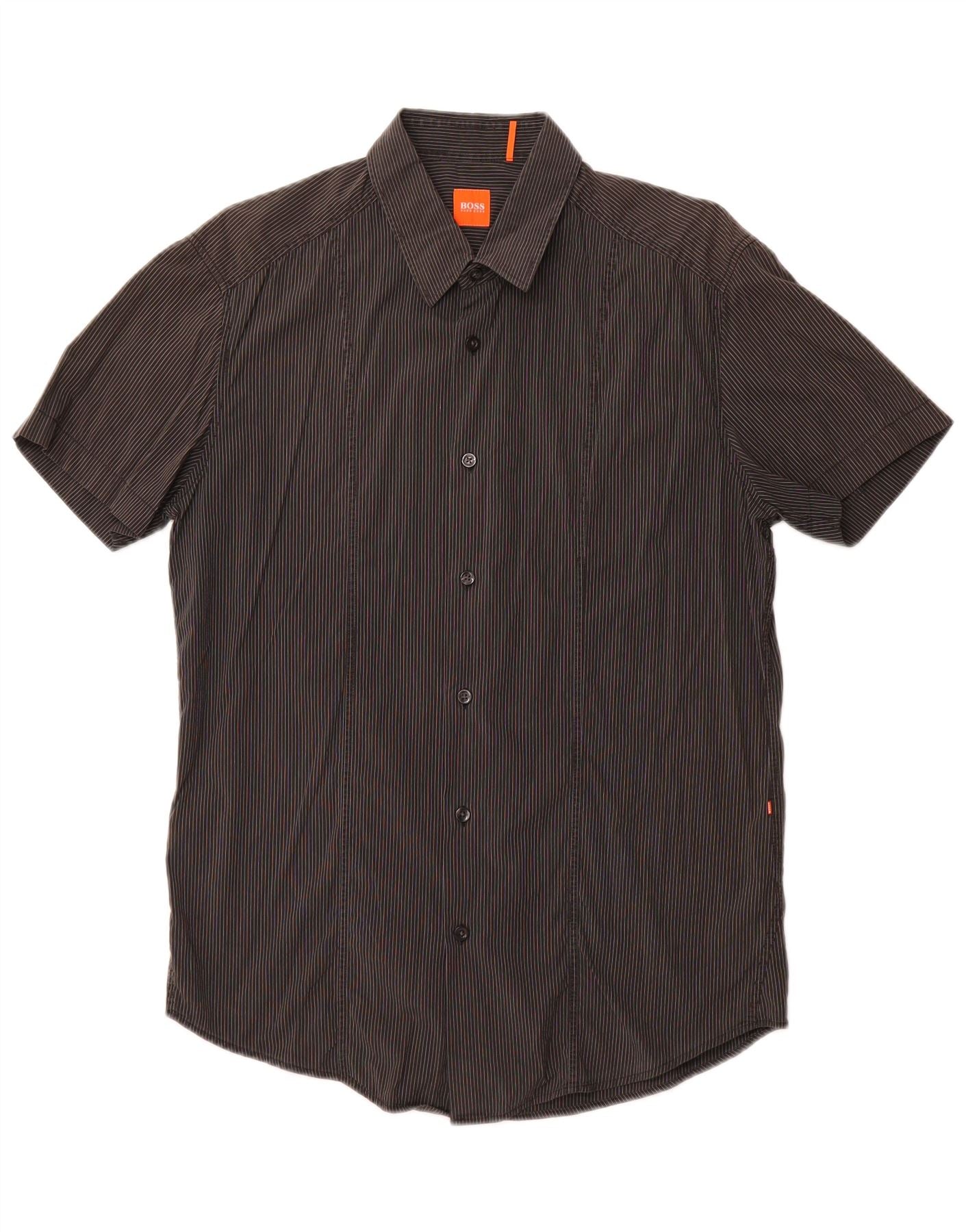 HUGO BOSS Kortærmet herreskjorte Stor grå nålestribet bomuld